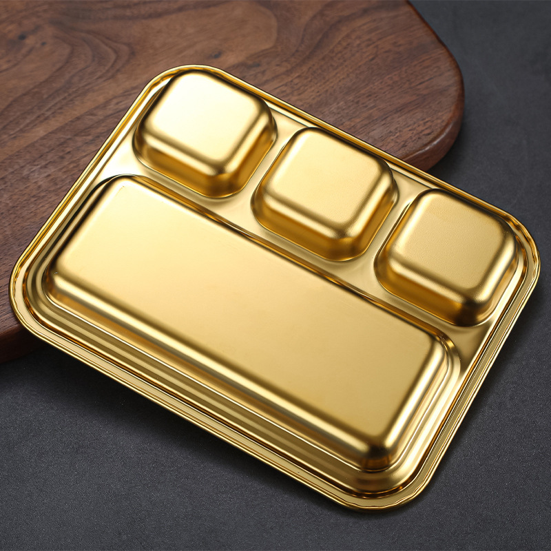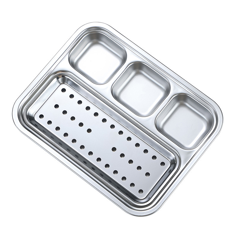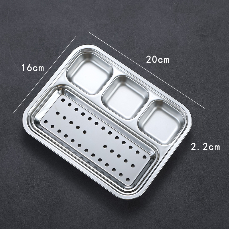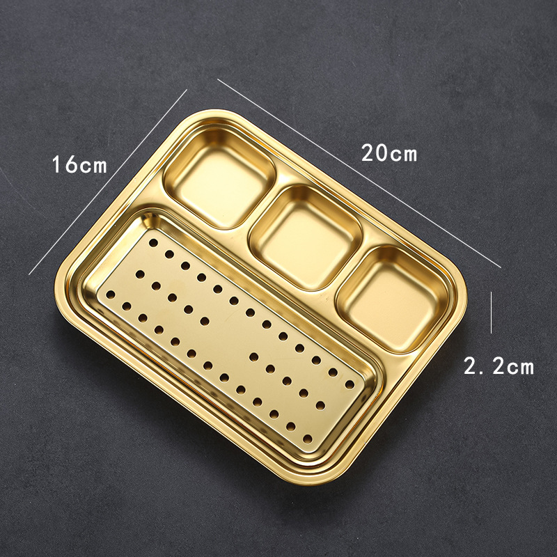 304韩式烤肉餐盘带三格味碟盘子沥水饺子盘小吃盘烤肉碟子牛排盘