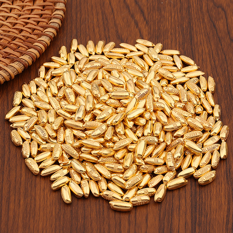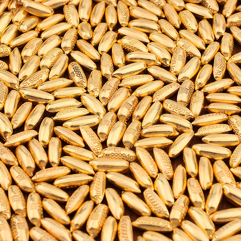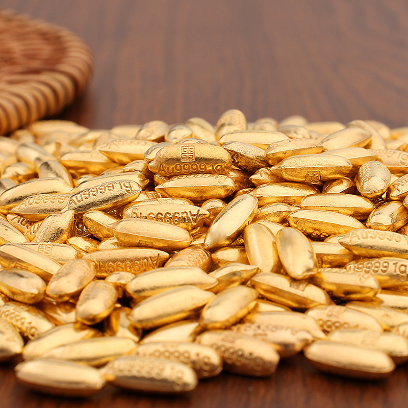 仿真迷你金色金元宝沙金实心小元宝金豆大米金瓜子聚宝盆装饰摆件