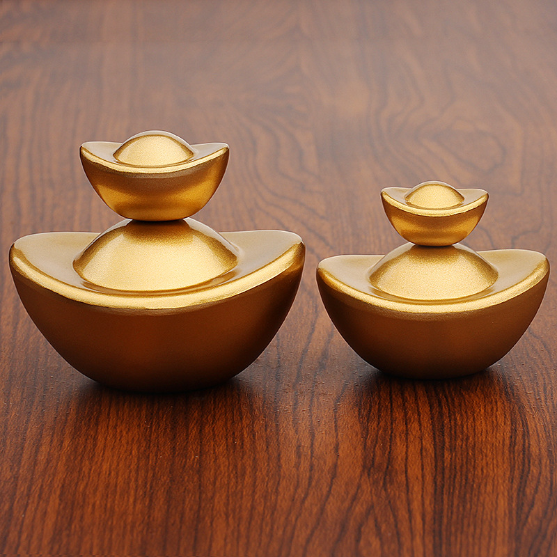 新款个互不元宝家居开业桌面摆件光面实心元宝摆件配饰金属工艺品