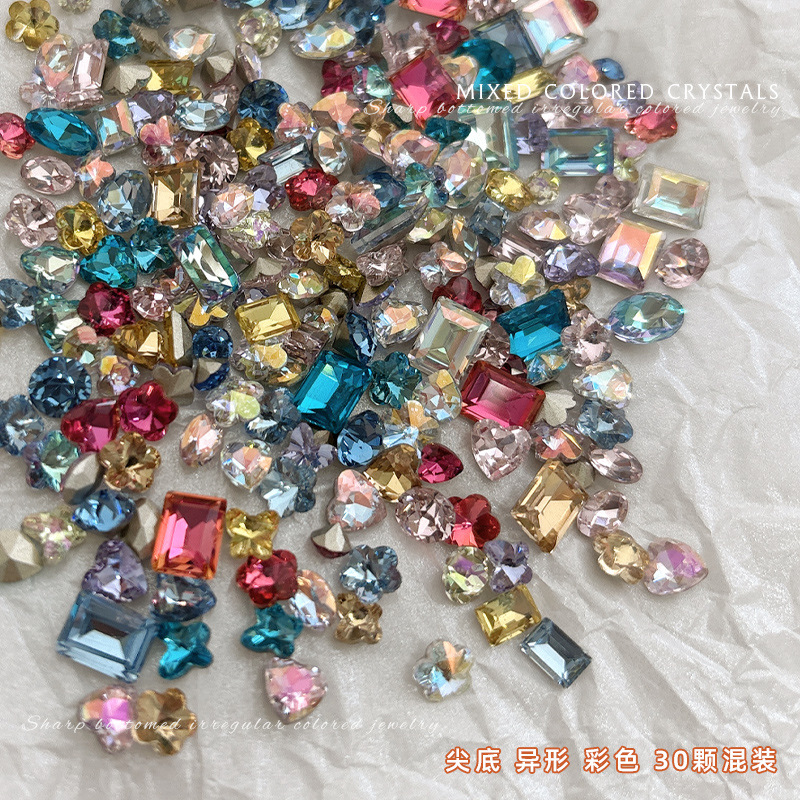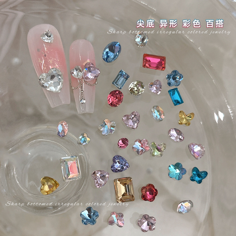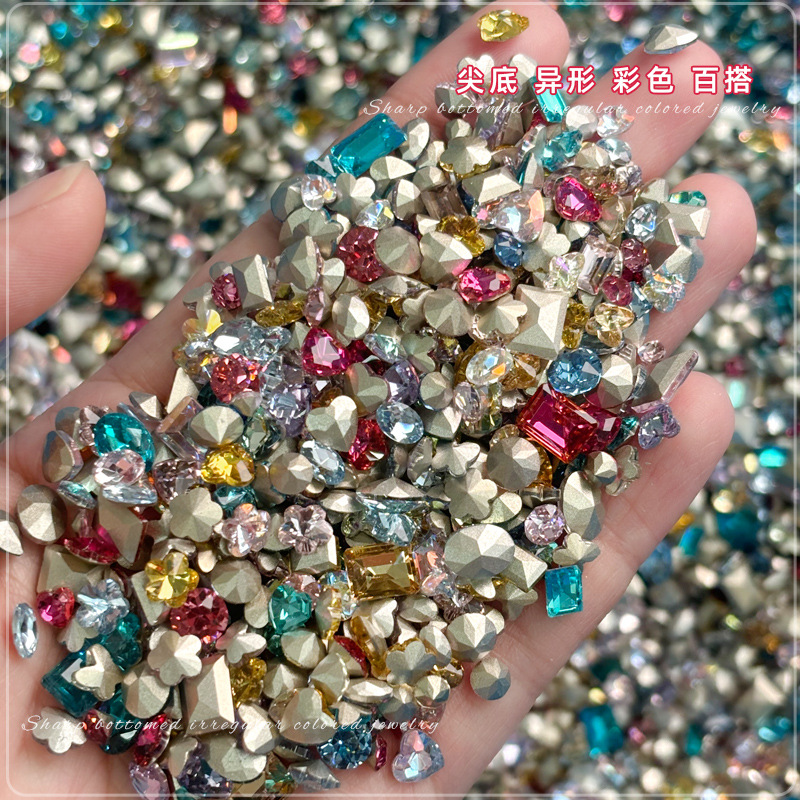 夏日彩钻糖果美甲饰品尖底异形钻大杂烩混色小钻爆闪穿戴指甲钻石