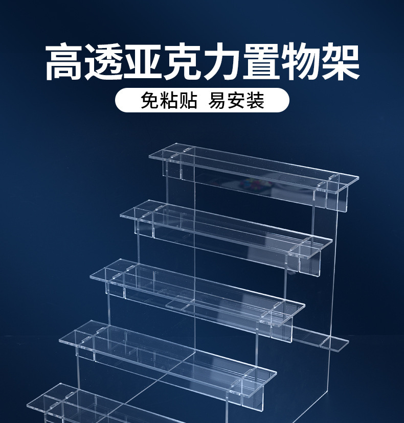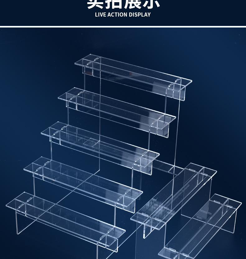 亚克力阶梯式展示架台阶直播手办玩具盲盒收纳盒透明泡泡玛特陈列