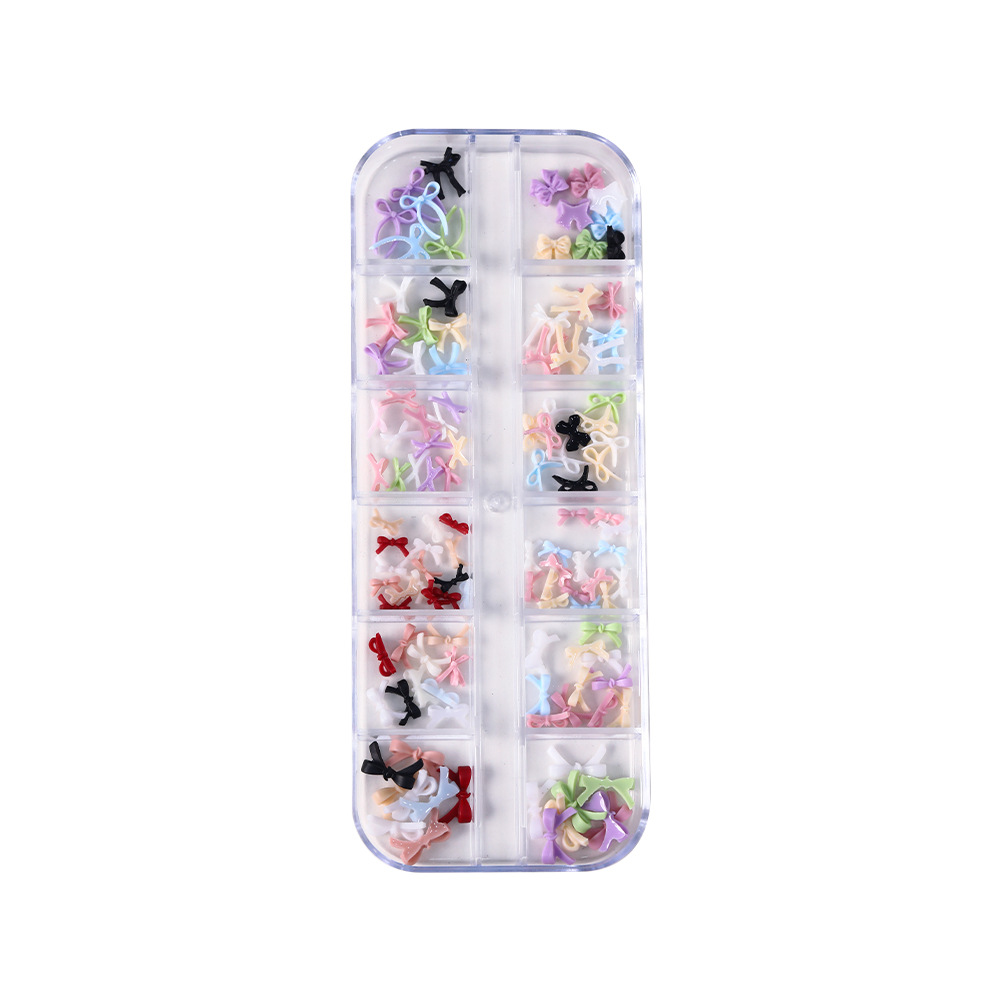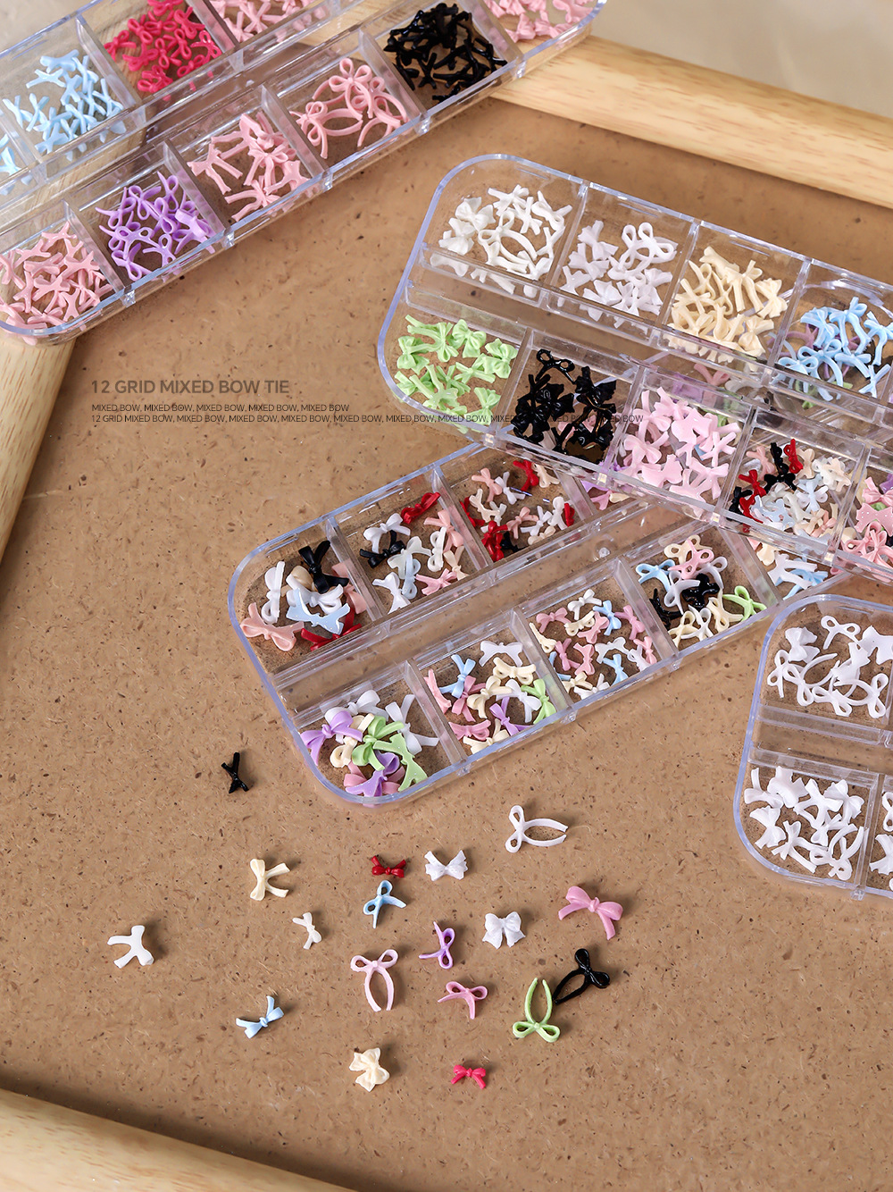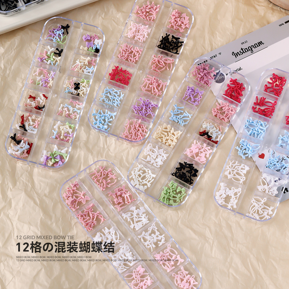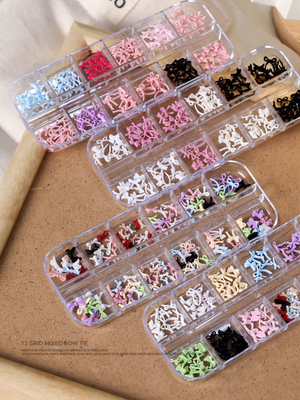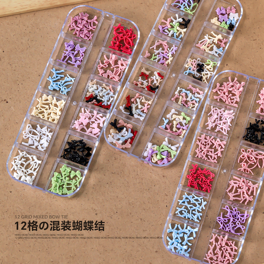 12格美甲饰品大杂烩迷你蝴蝶结马卡龙混装立体飘带领结指甲钻配饰