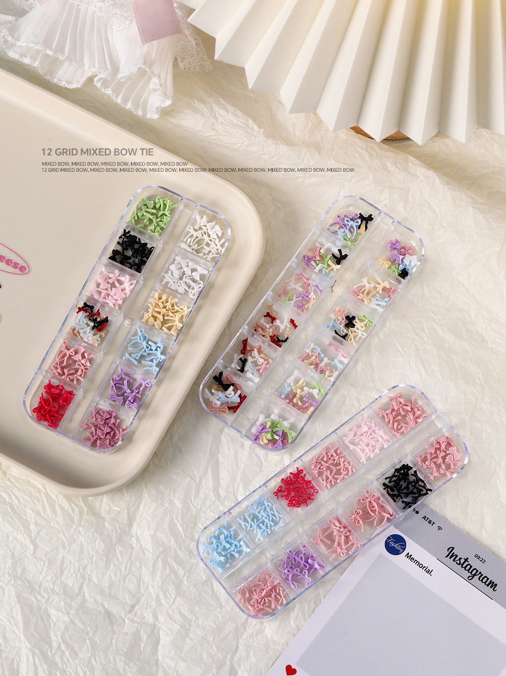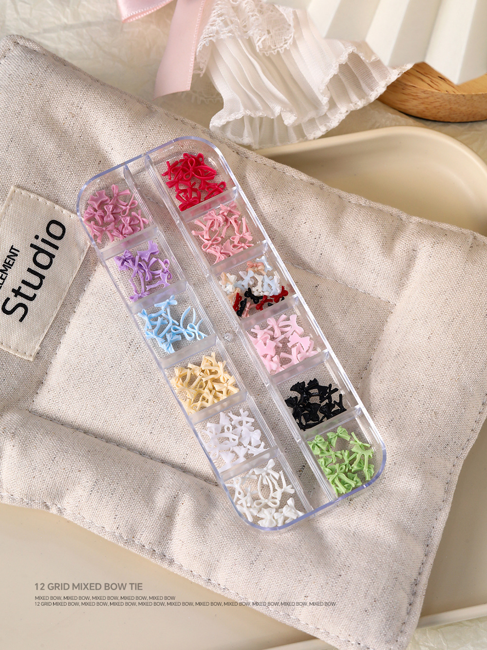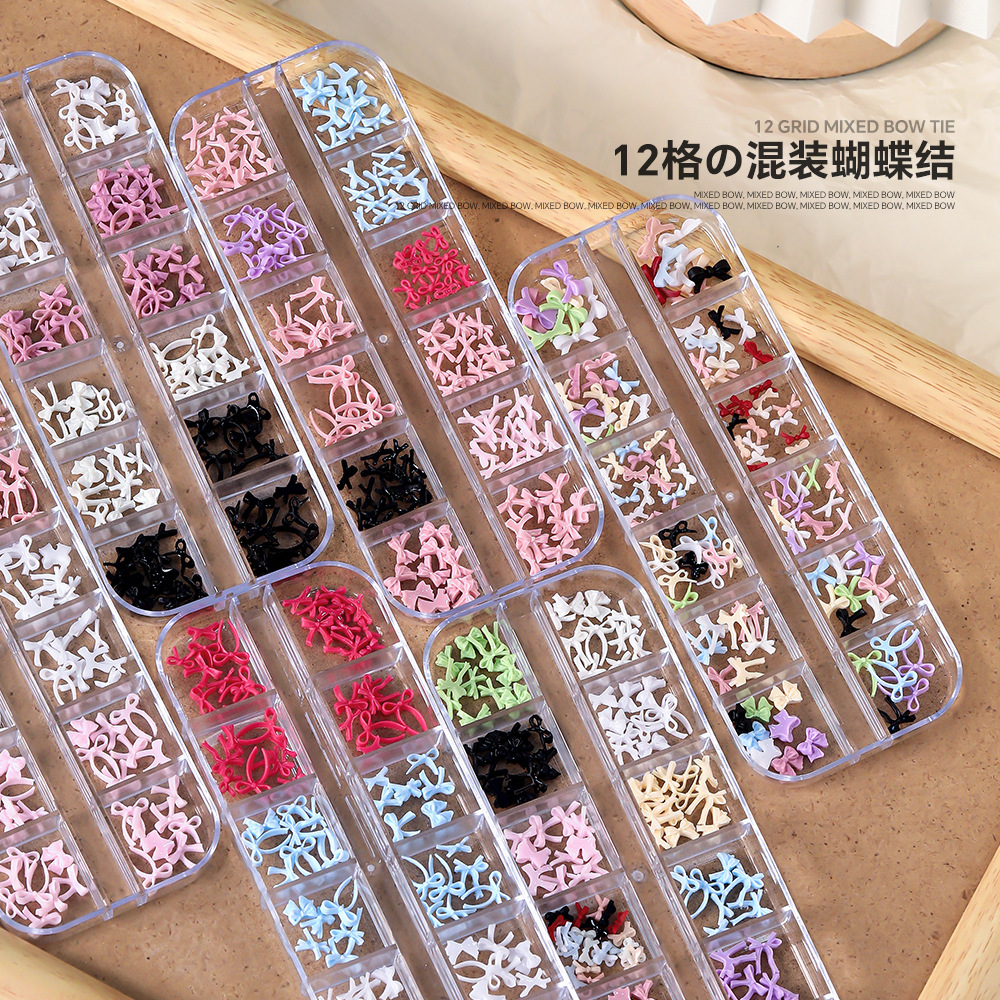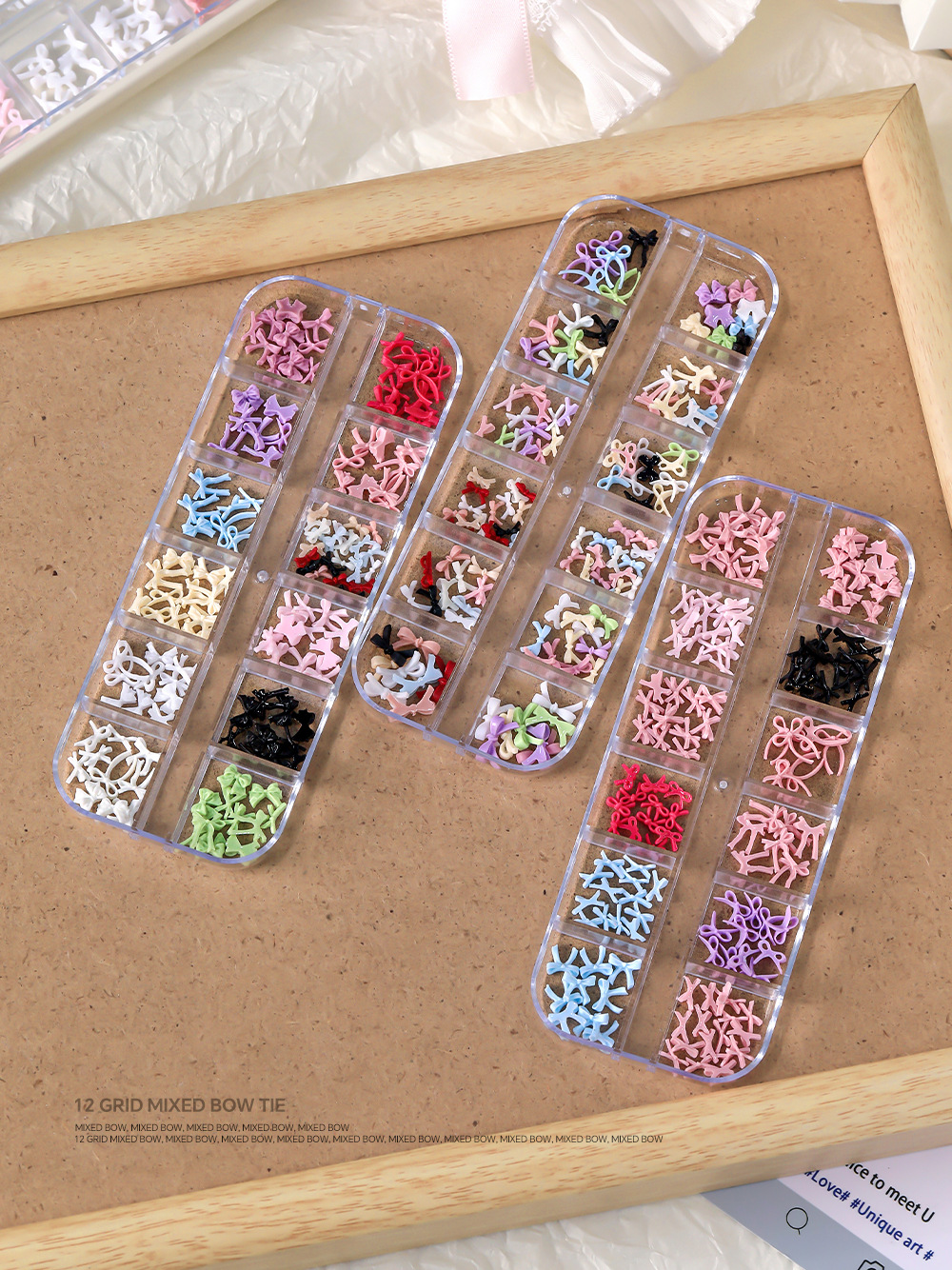 12格美甲饰品大杂烩迷你蝴蝶结马卡龙混装立体飘带领结指甲钻配饰
