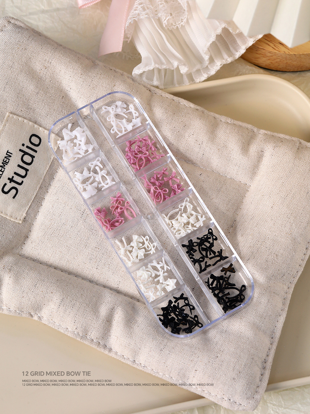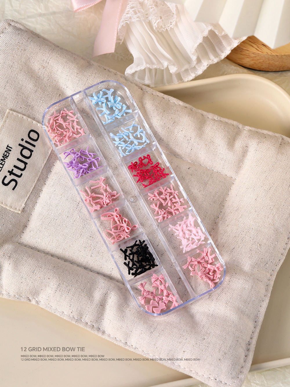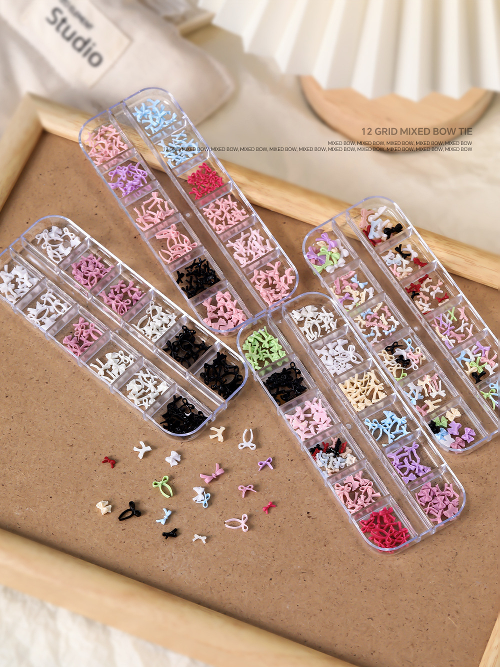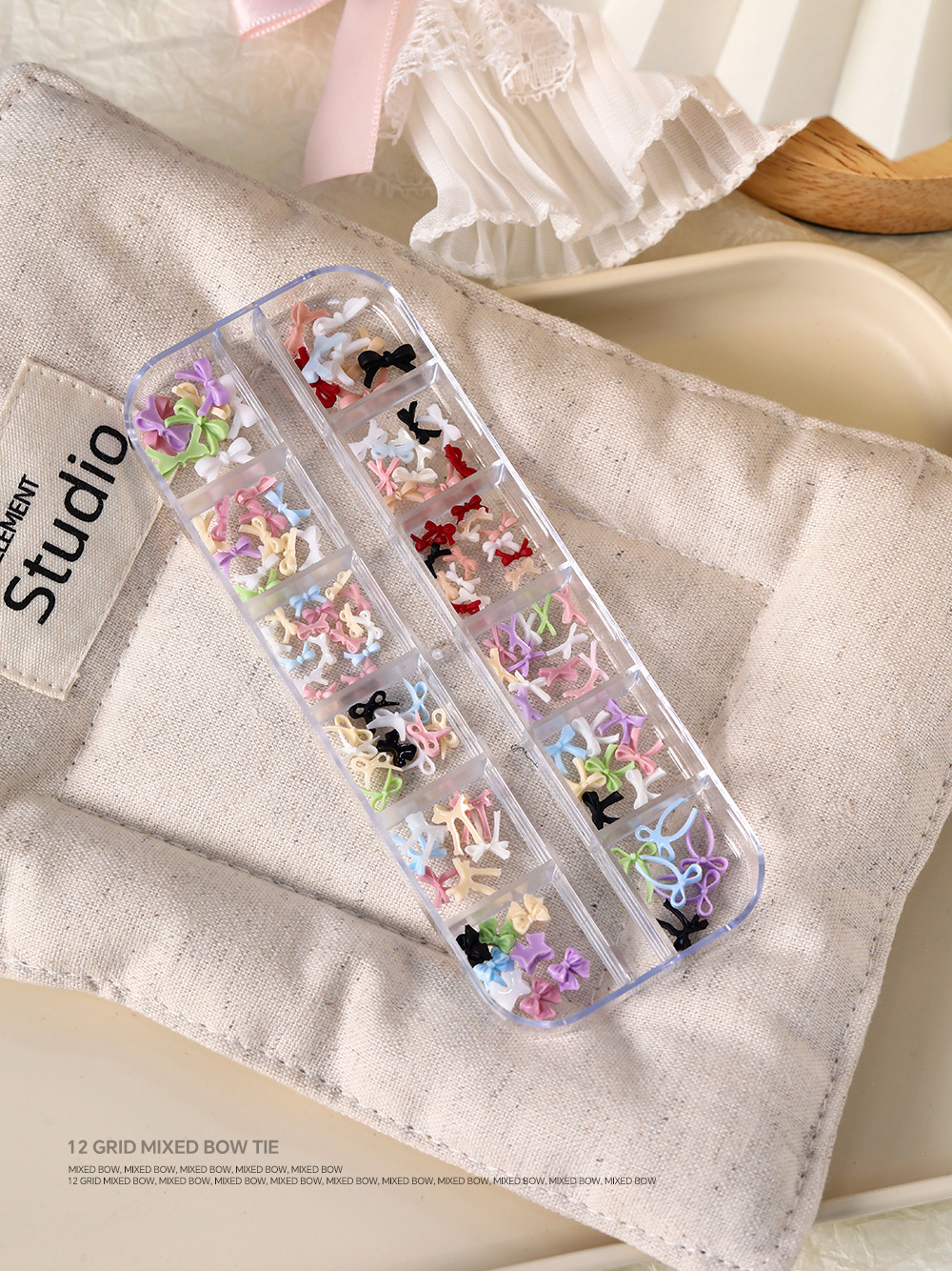 12格美甲饰品大杂烩迷你蝴蝶结马卡龙混装立体飘带领结指甲钻配饰