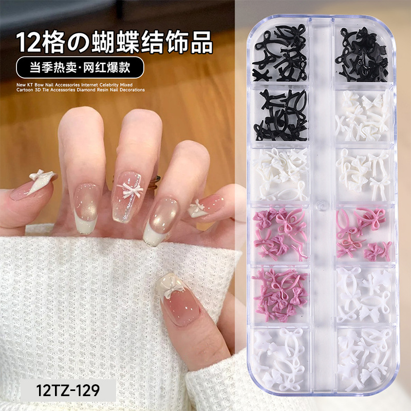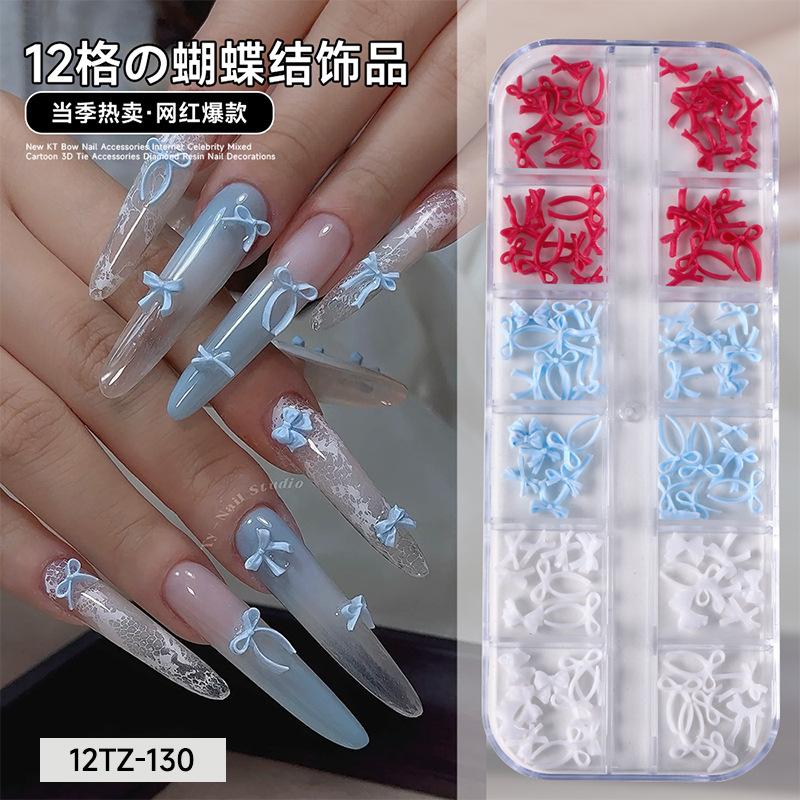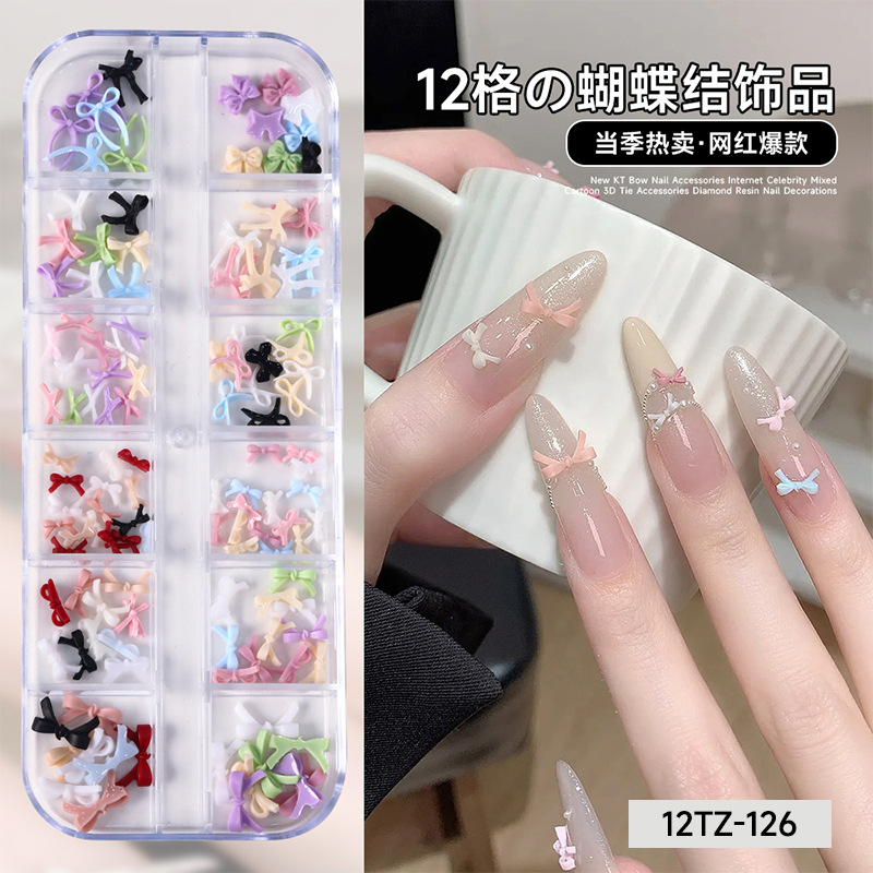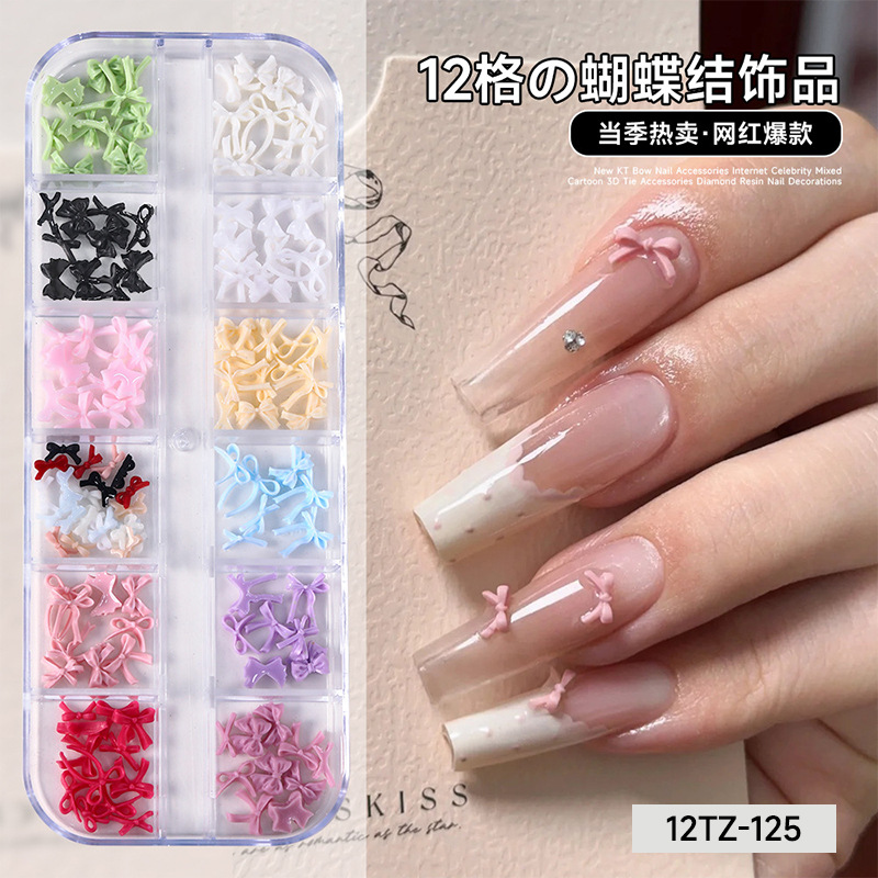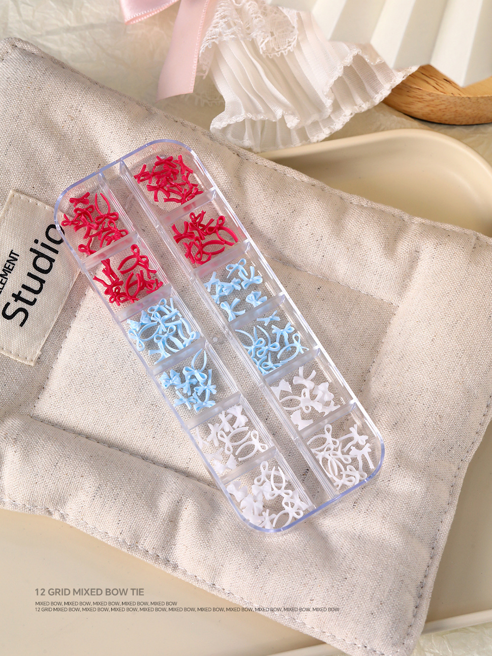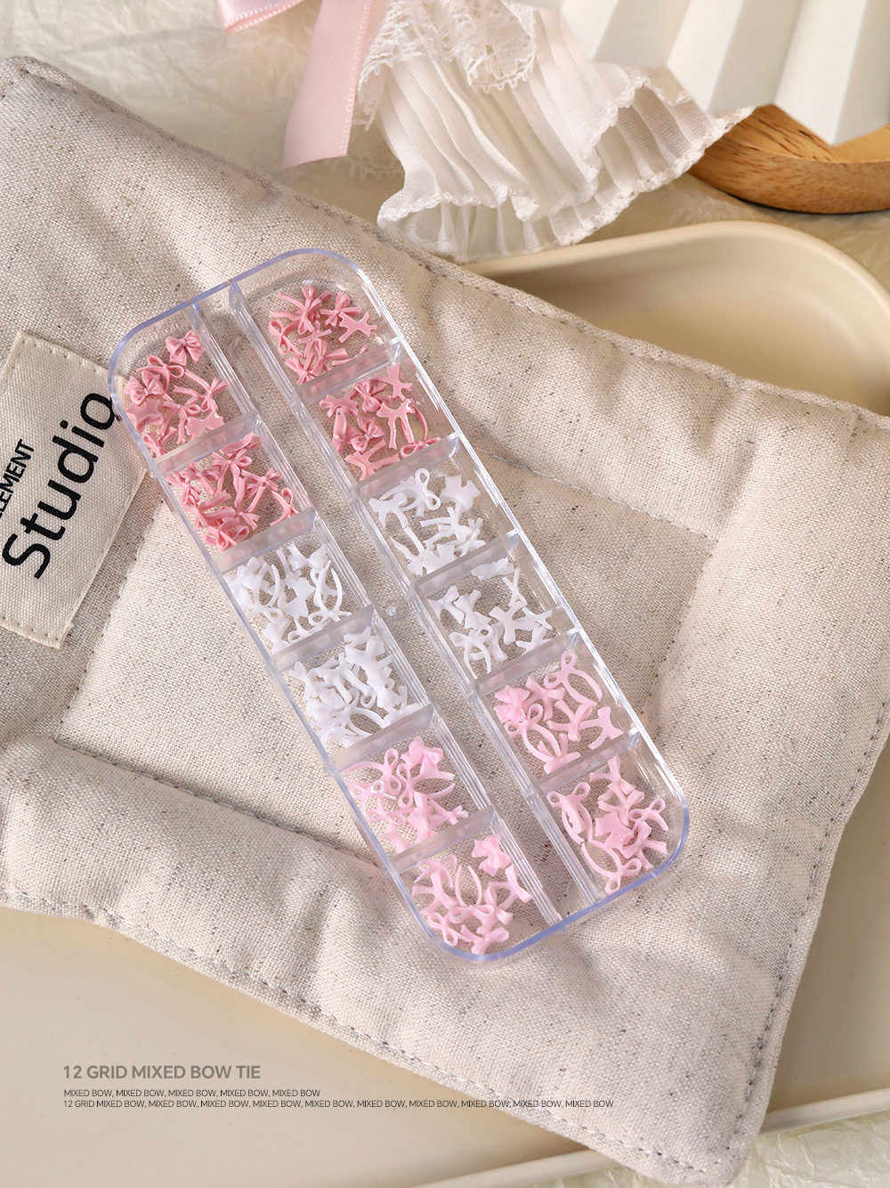 12格美甲饰品大杂烩迷你蝴蝶结马卡龙混装立体飘带领结指甲钻配饰