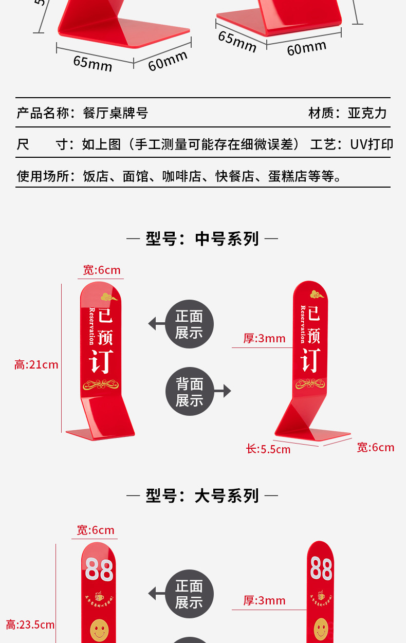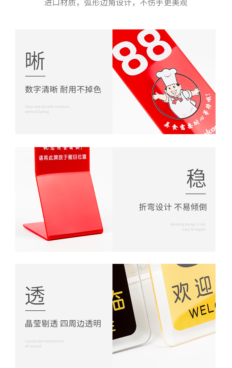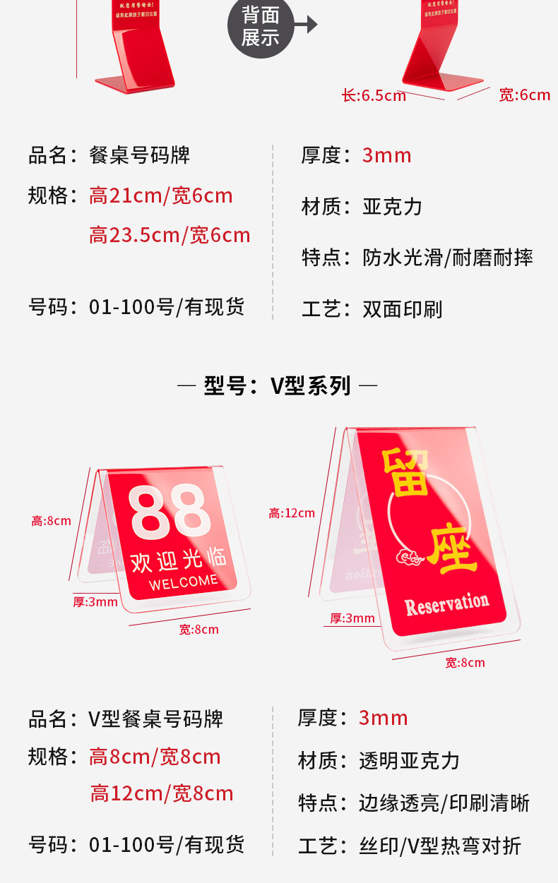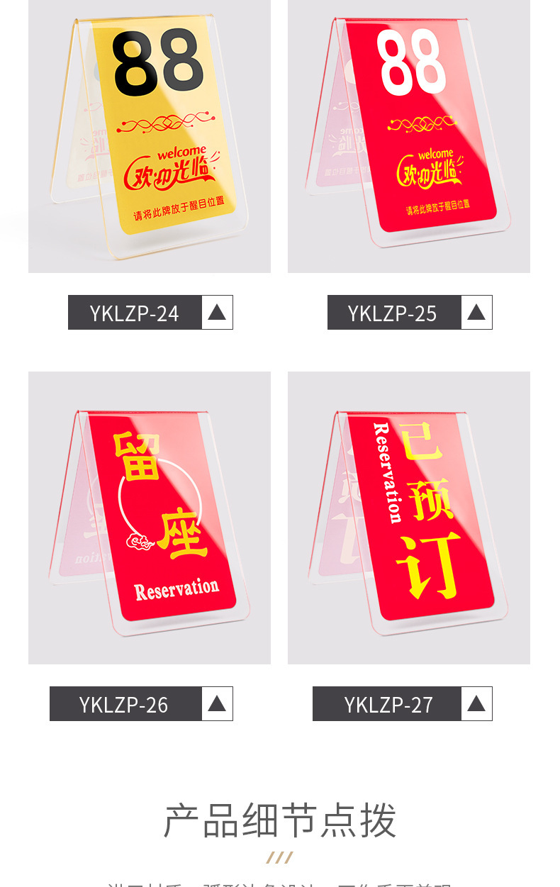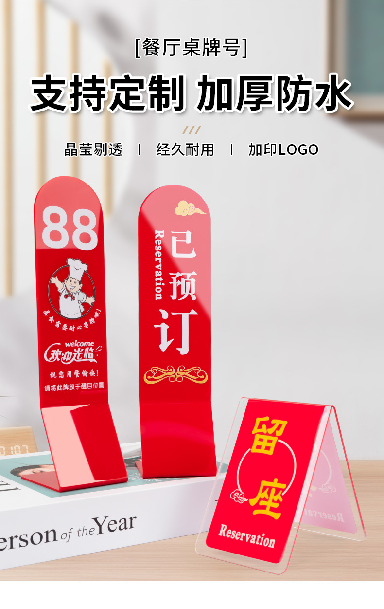 亚克力桌号牌定制便捷餐桌牌台号牌餐厅点餐座位号加厚防水展示牌