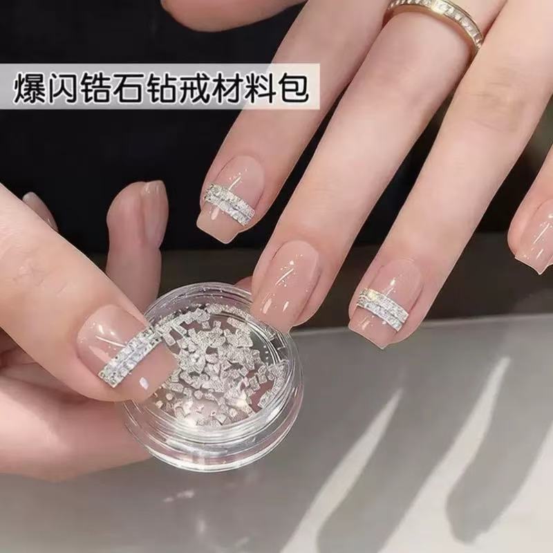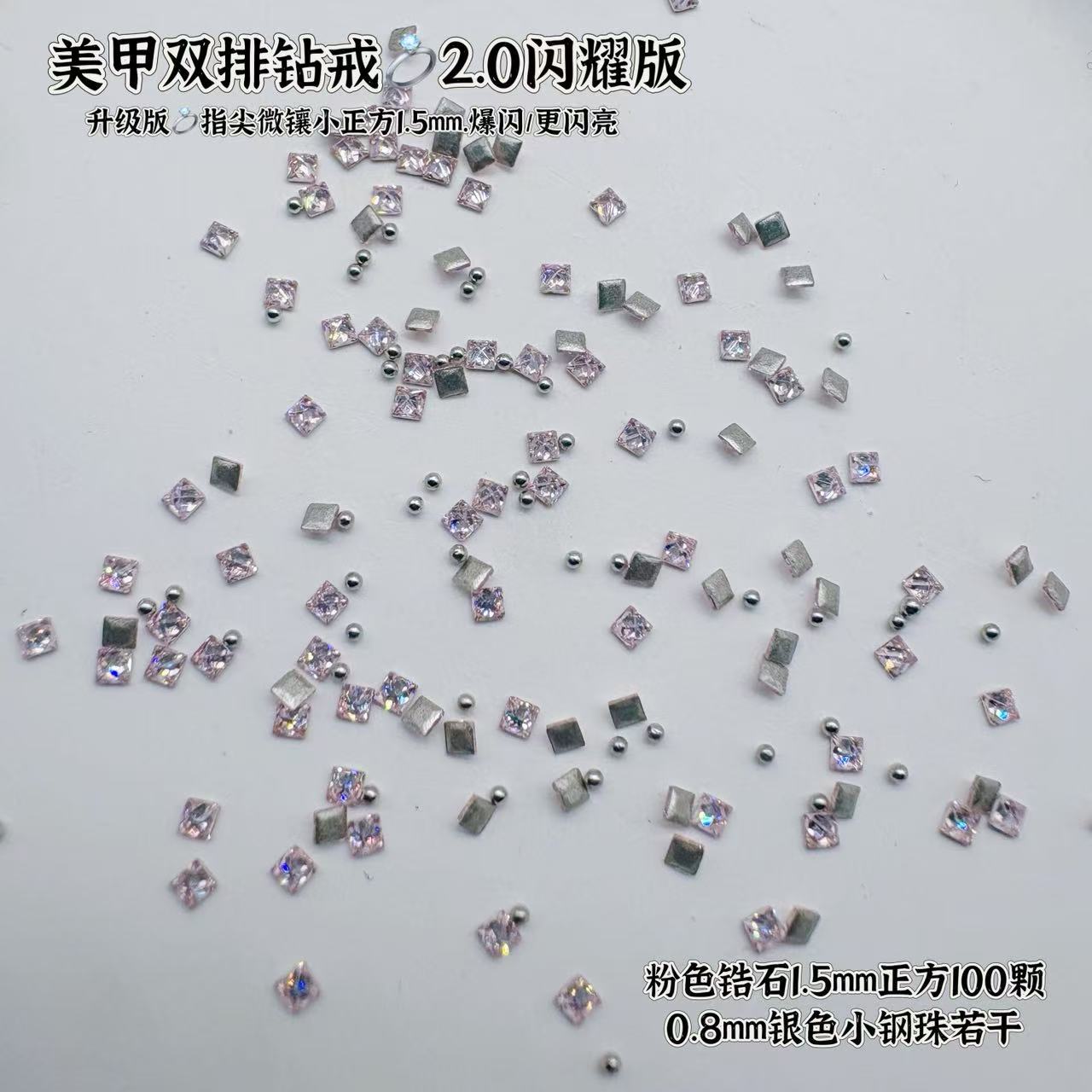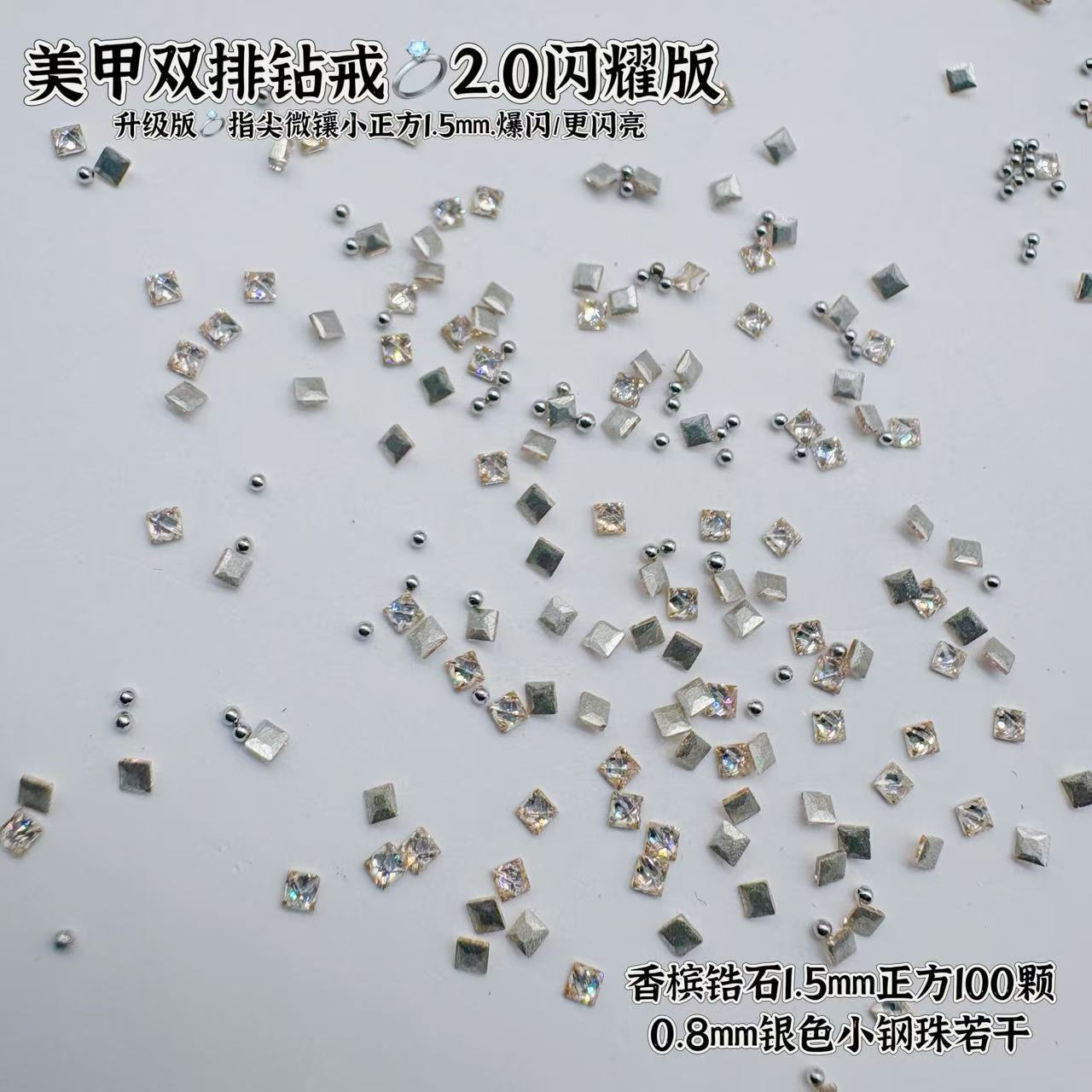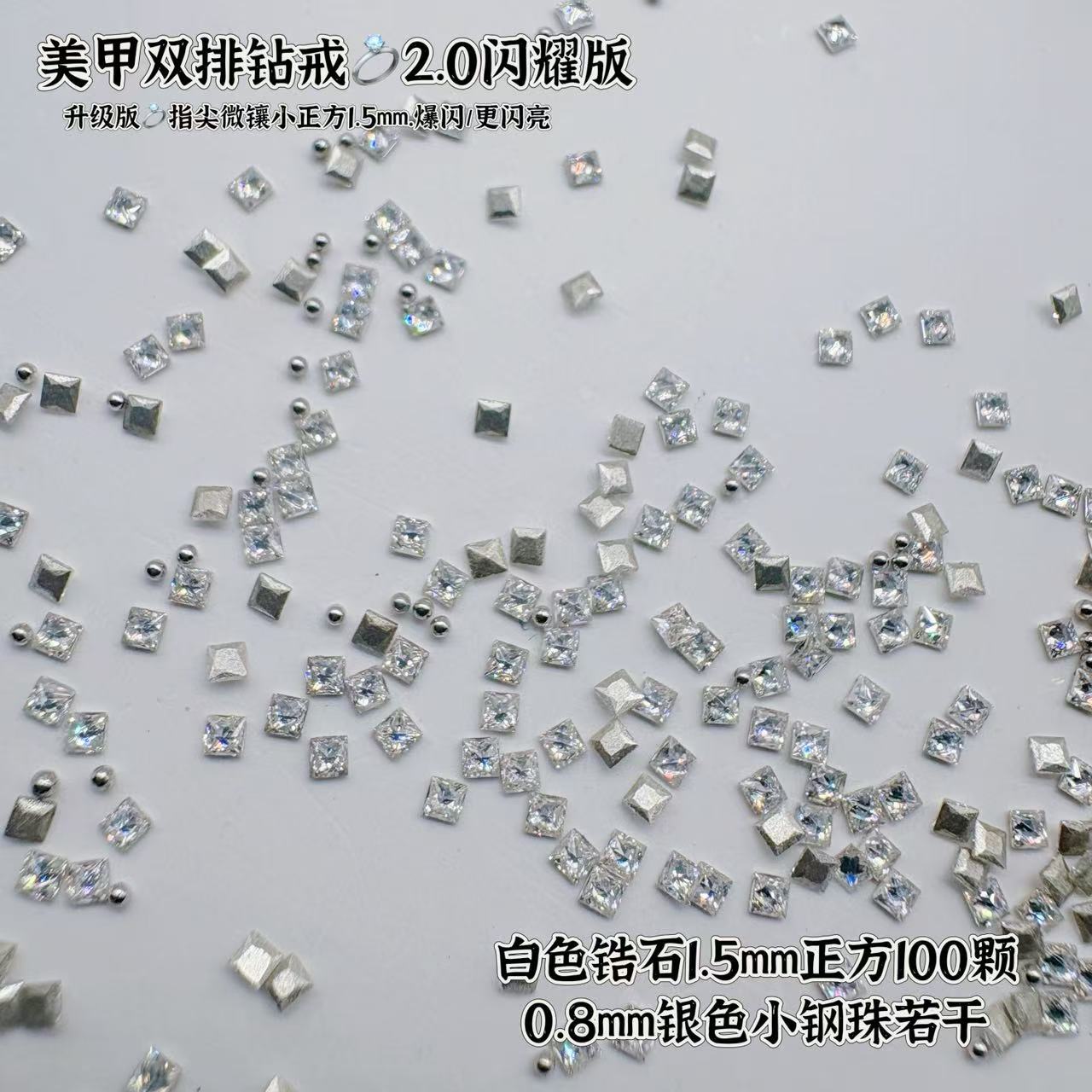 爆闪迷你正方锆石白色平底钻美甲饰品小方块diy拼钻戒装饰指甲钻