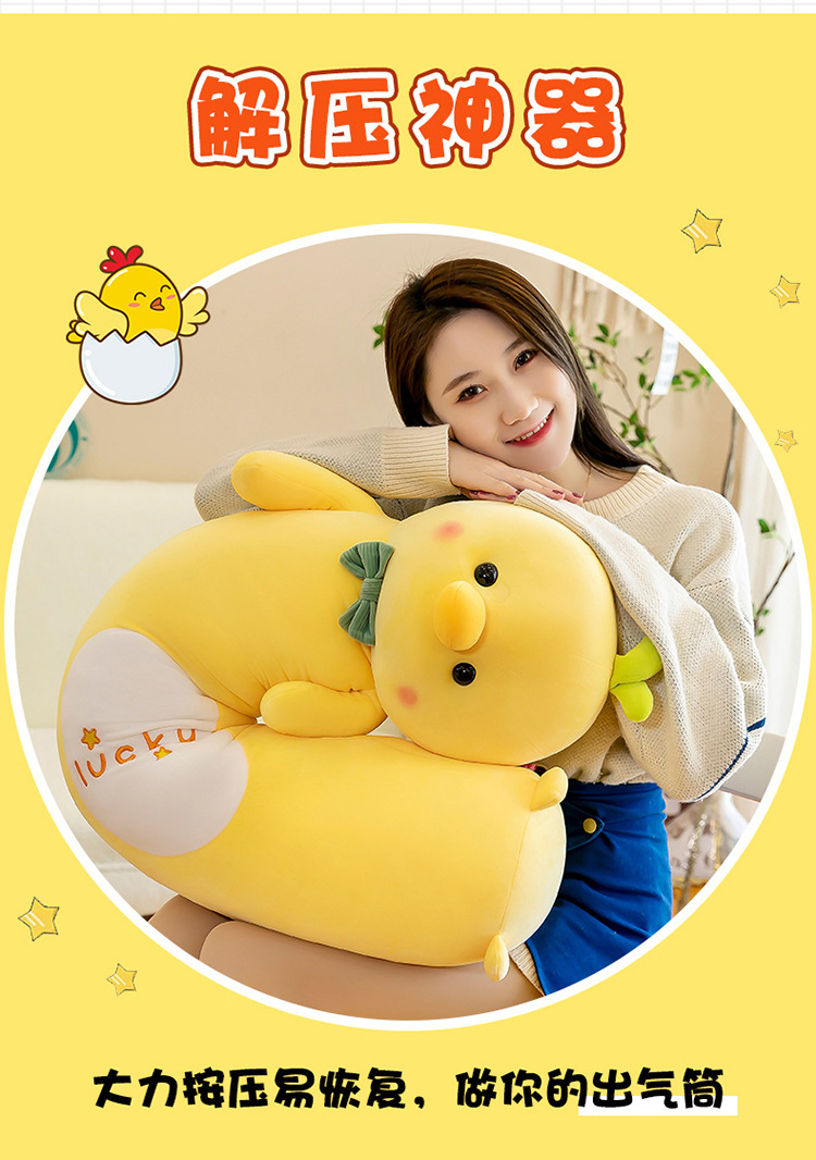跨境外贸可爱小黄鸡毛绒玩具可拆洗睡觉抱枕女生床上玩偶公仔玩具