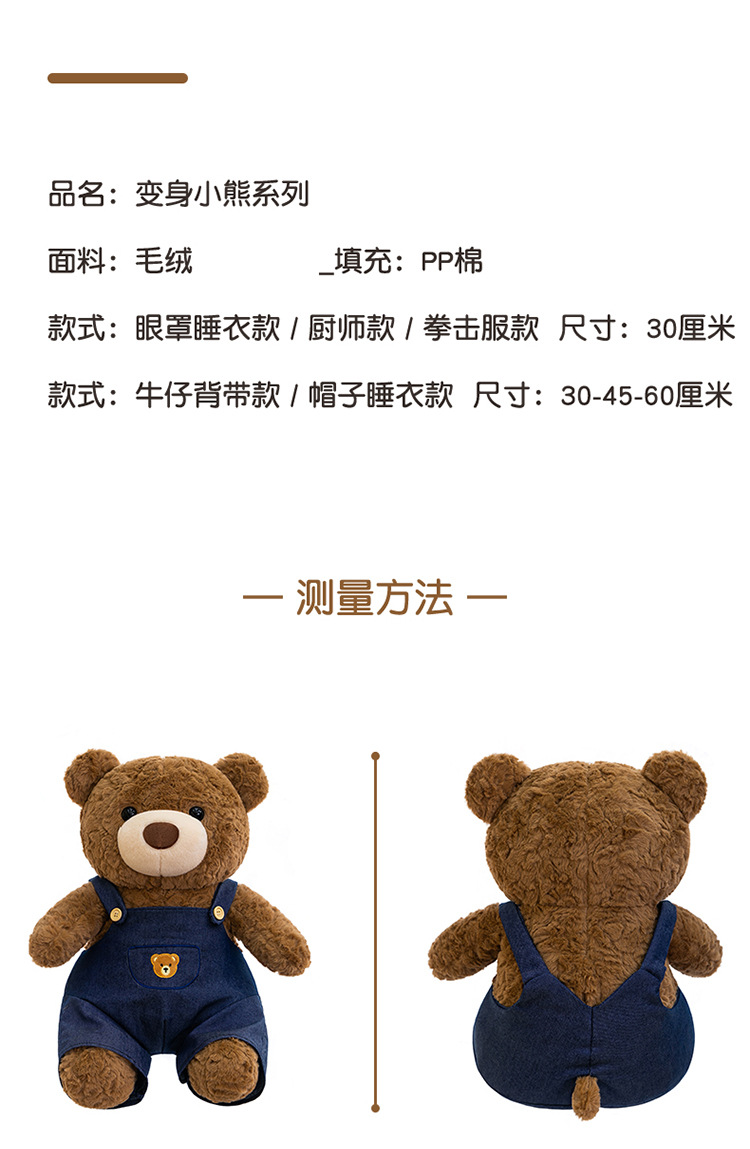俏皮小熊公仔创意穿衣小熊娃娃毛绒玩具送儿童生日礼物陪伴娃娃批