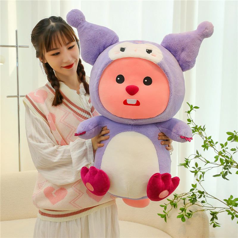新款变装海狸库洛米玩偶毛绒玩具公仔床上抱枕布娃娃生日礼物迷你