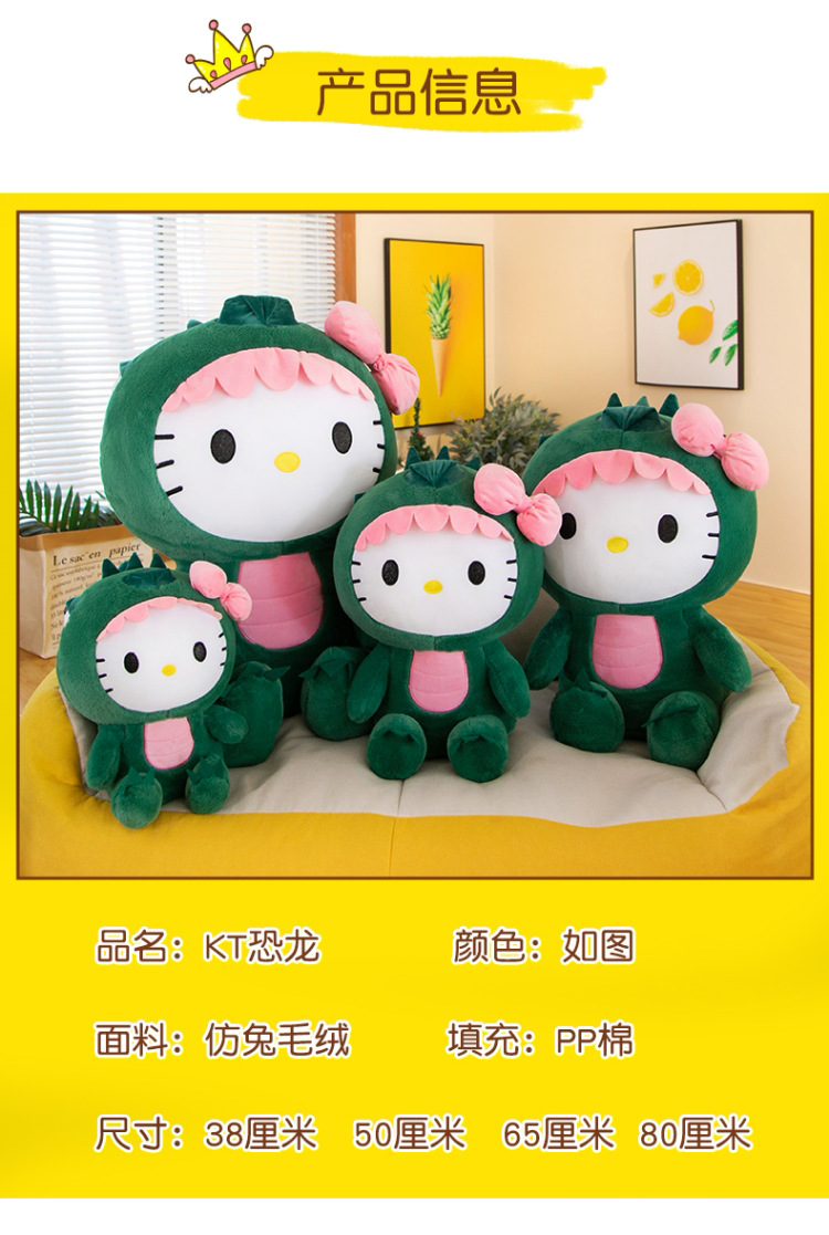 新款KT猫变装恐龙玩偶毛绒玩具睡觉抱枕娃娃凯蒂猫公仔摆件礼物女