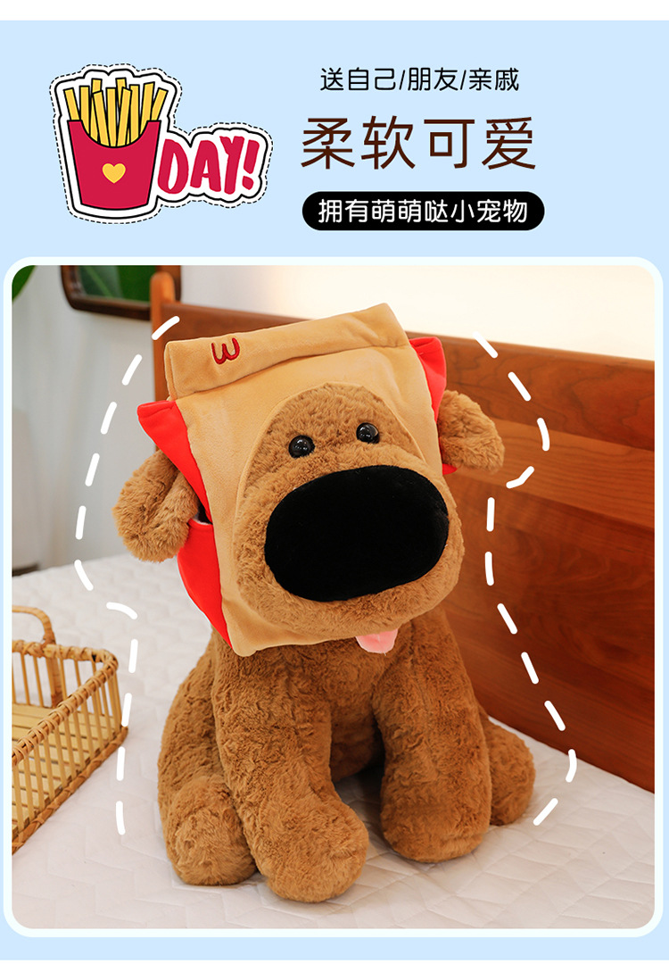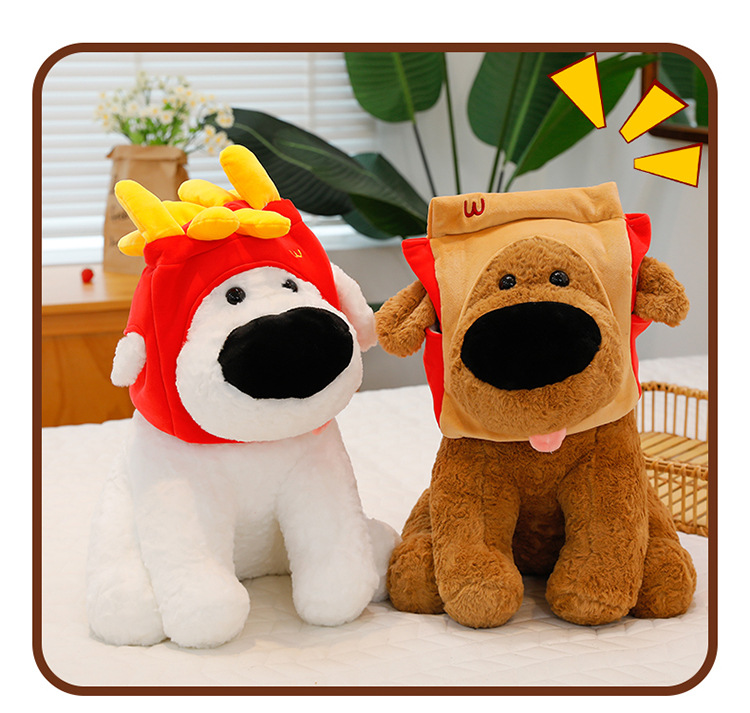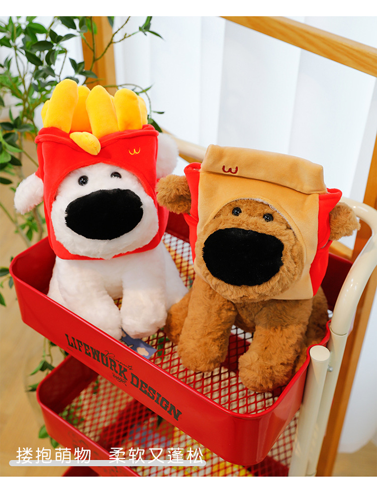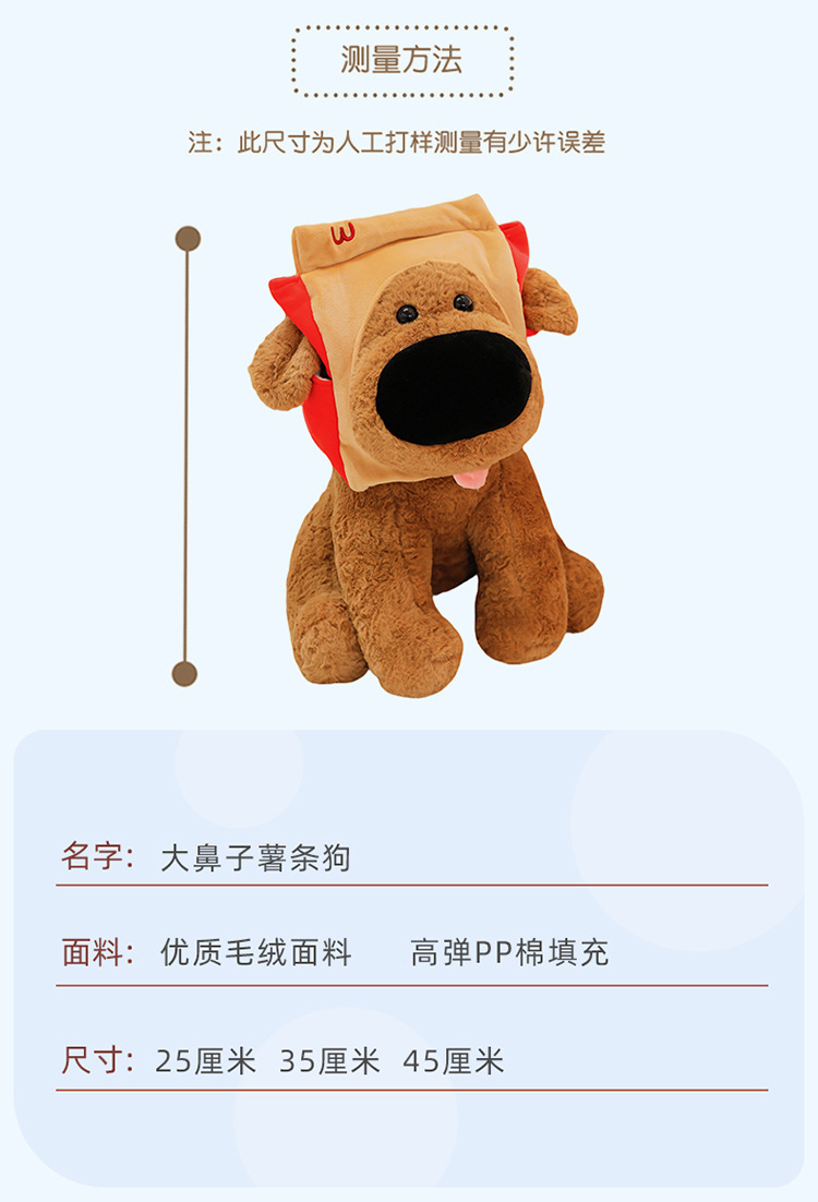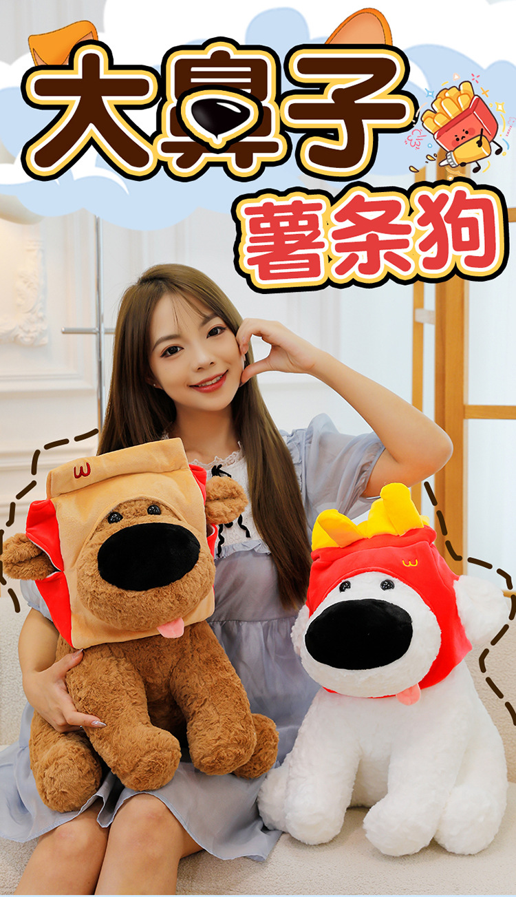 网红大鼻子狗公仔毛绒玩具可爱卡通薯条狗吃盐的鱼薯条大鼻狗公仔