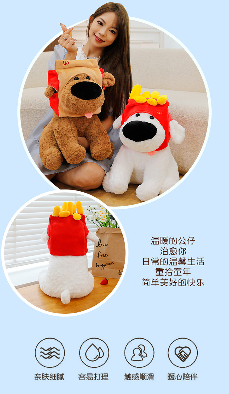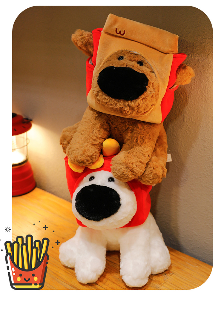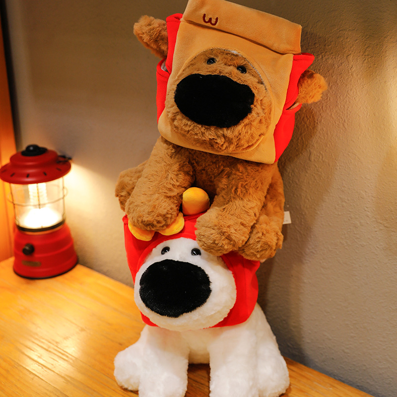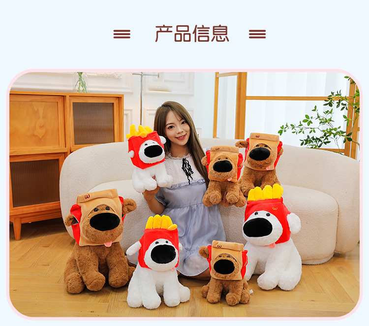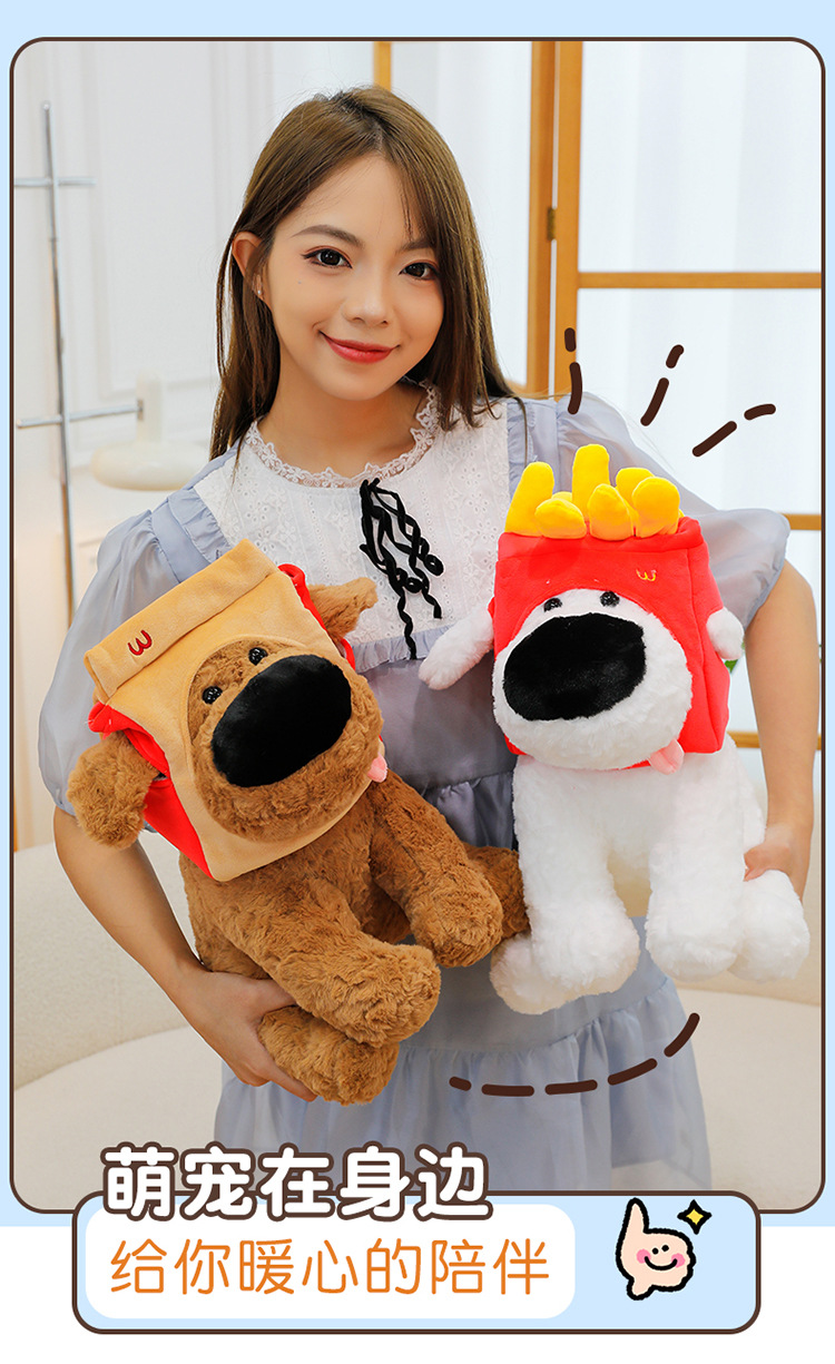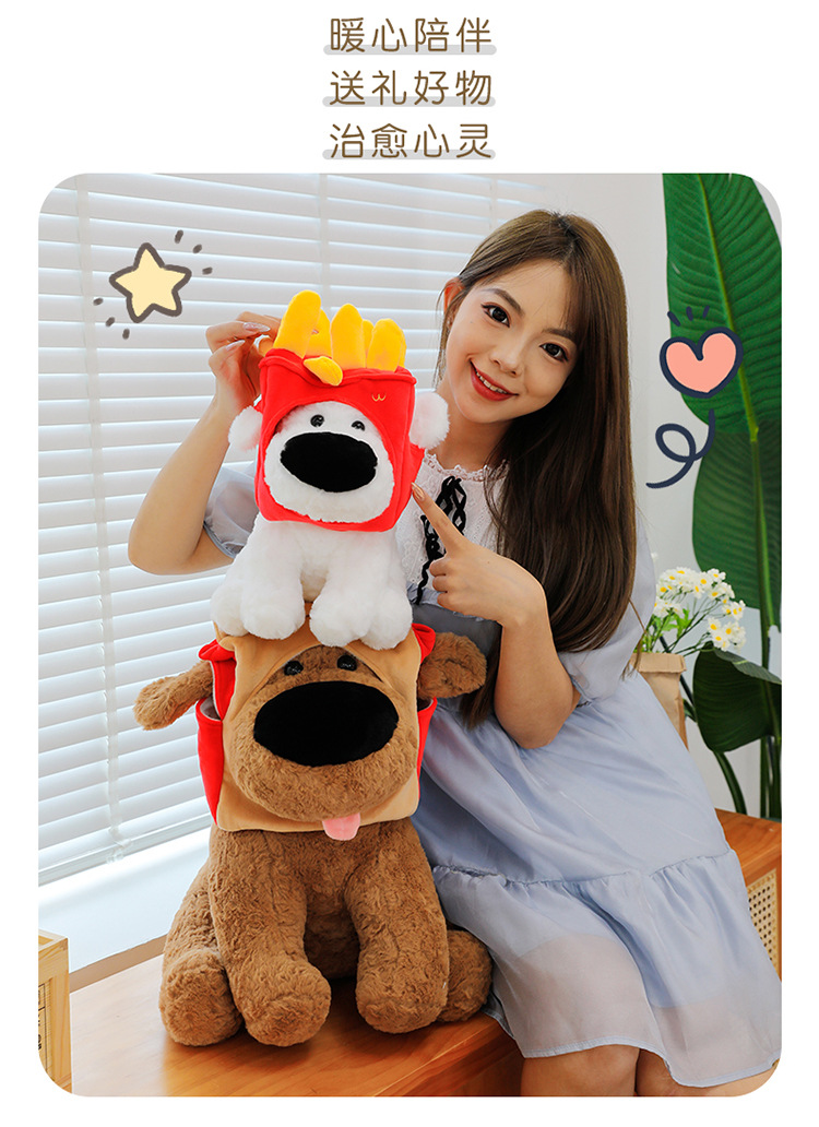 网红大鼻子狗公仔毛绒玩具可爱卡通薯条狗吃盐的鱼薯条大鼻狗公仔