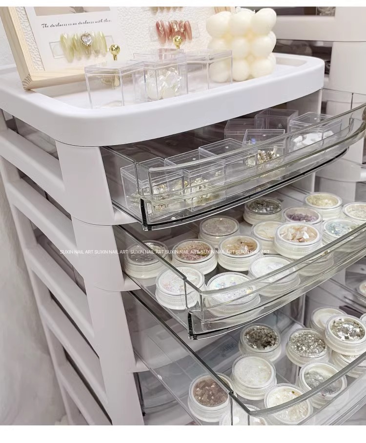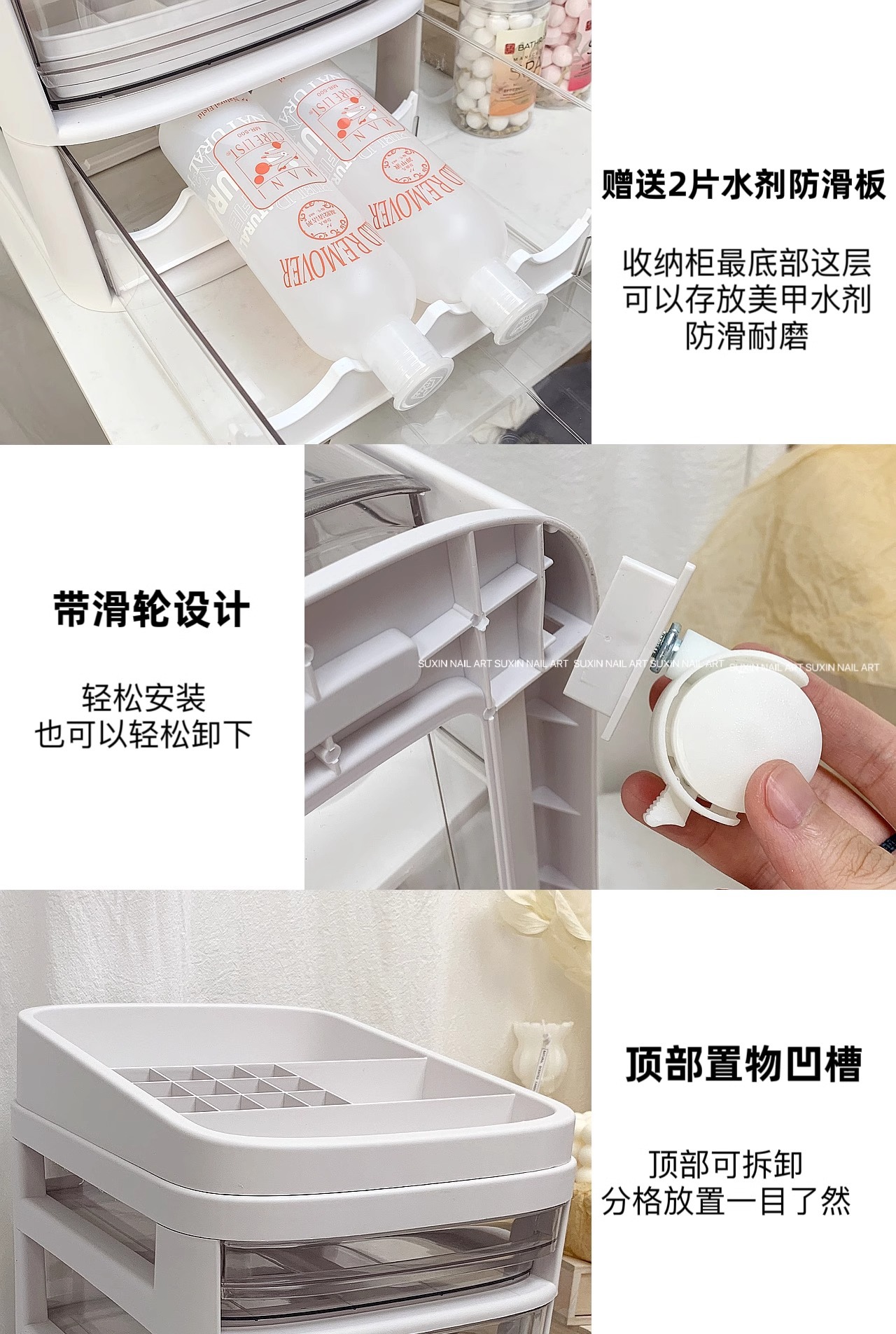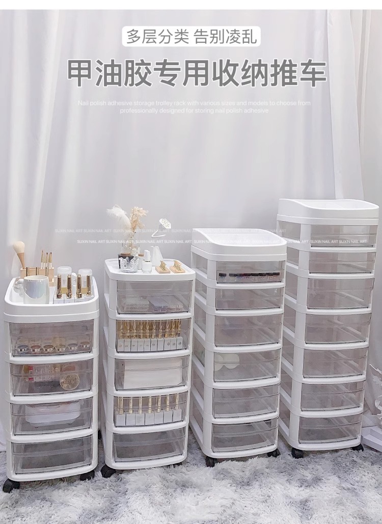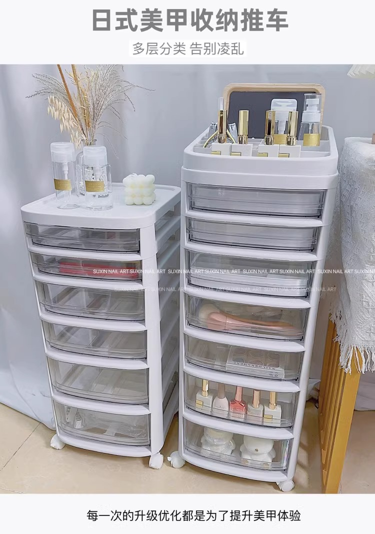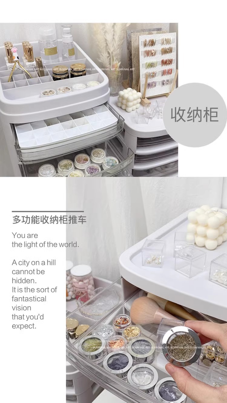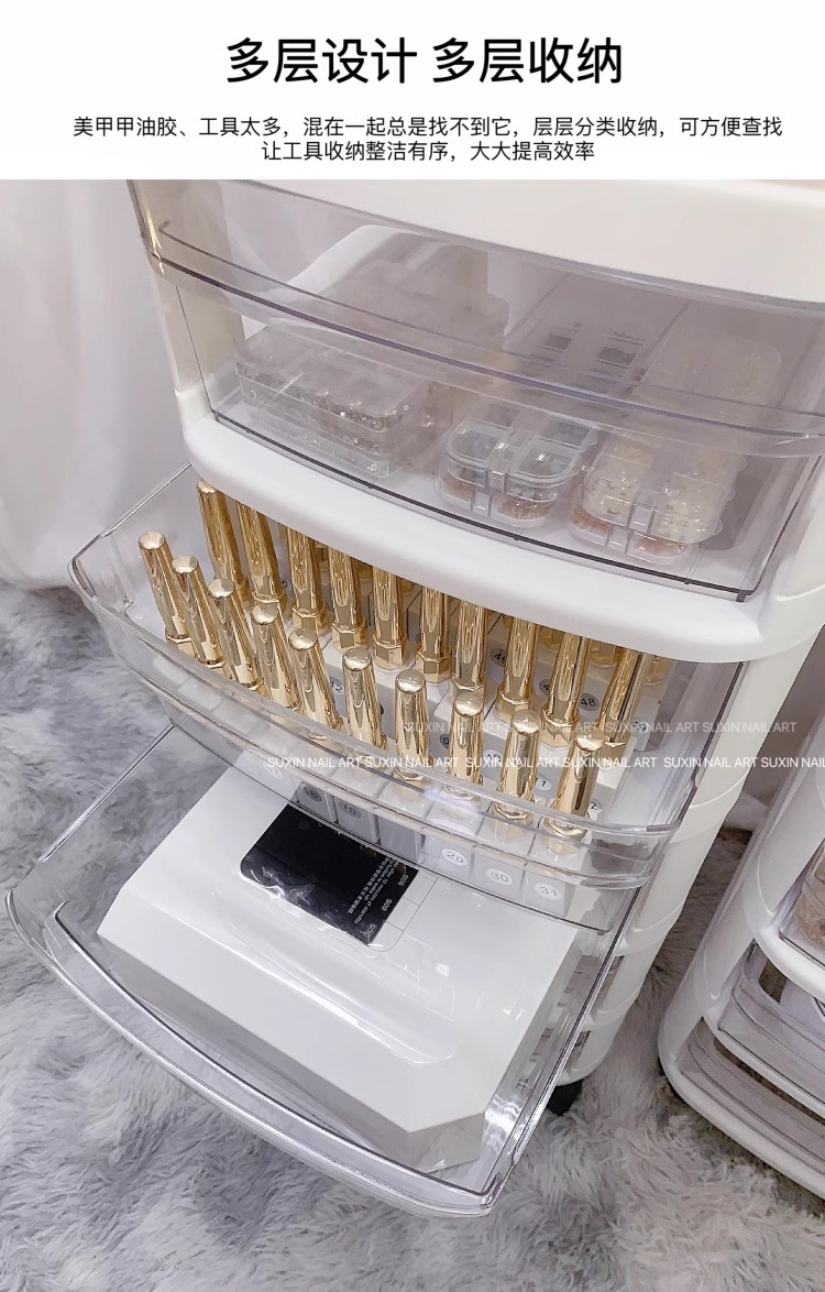 日式美甲推车防尘化妆品小推车多层可拆卸抽屉分格置物架饰品收纳