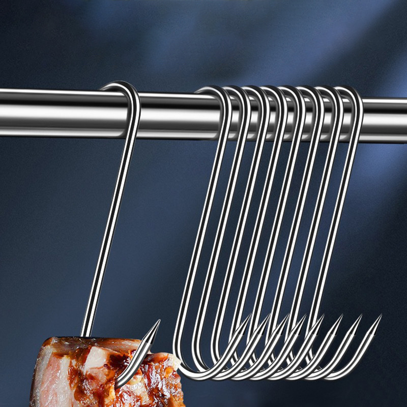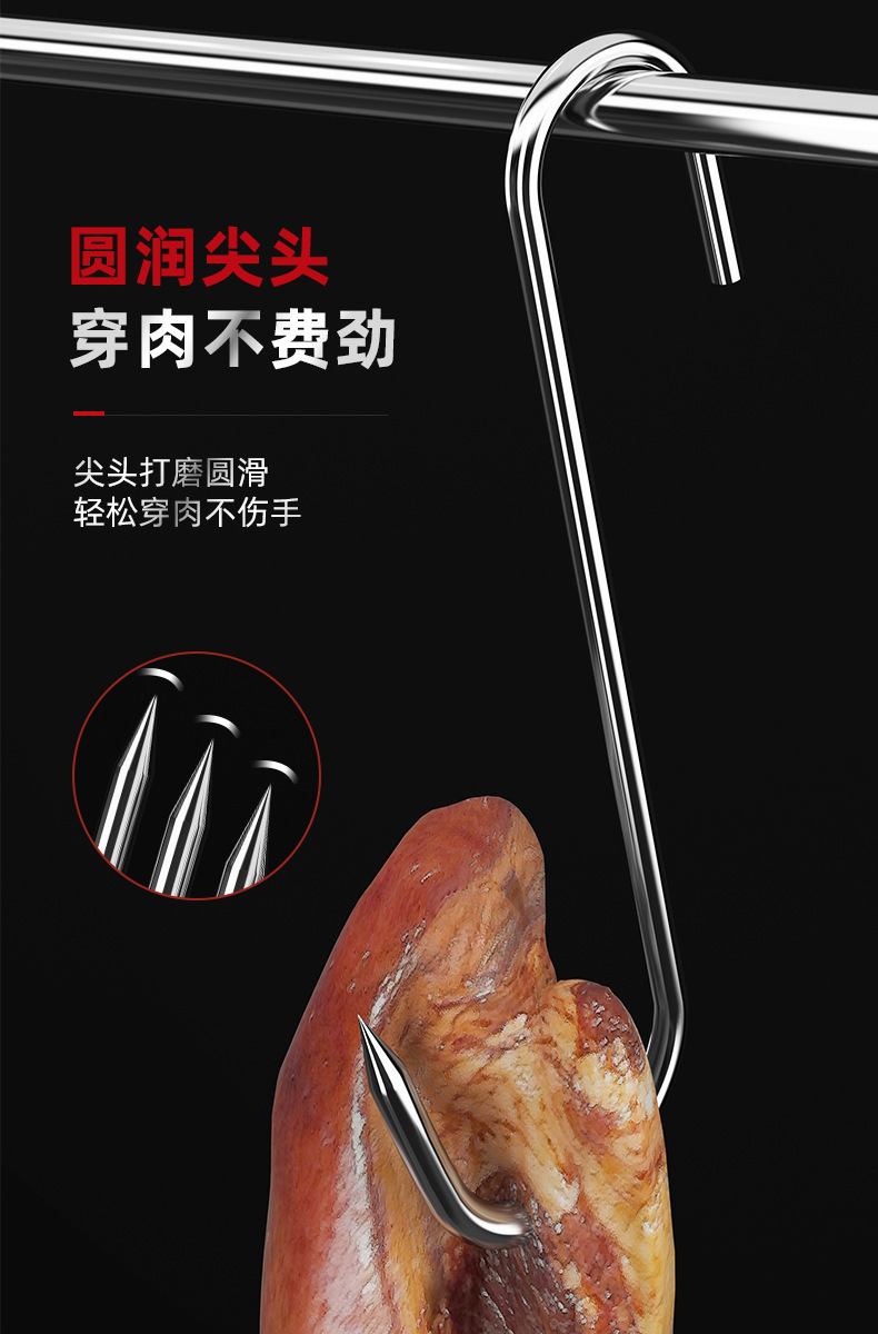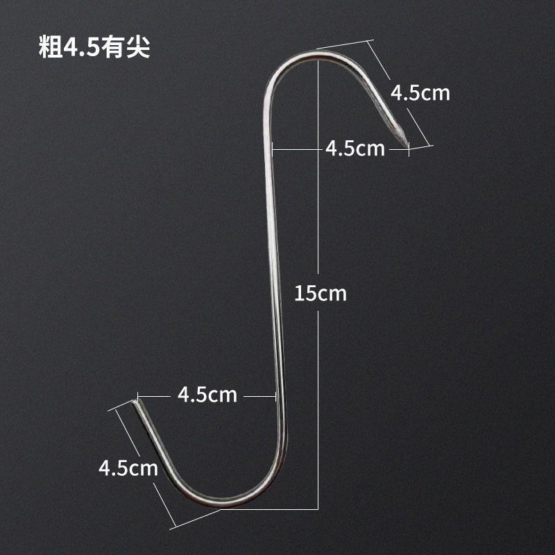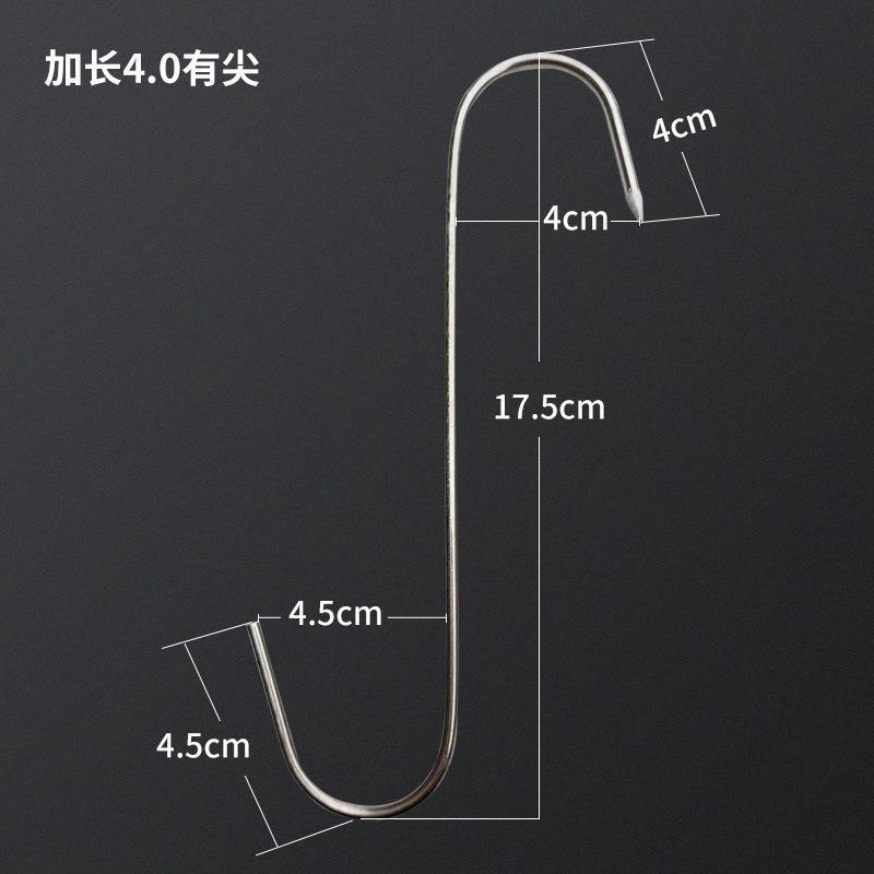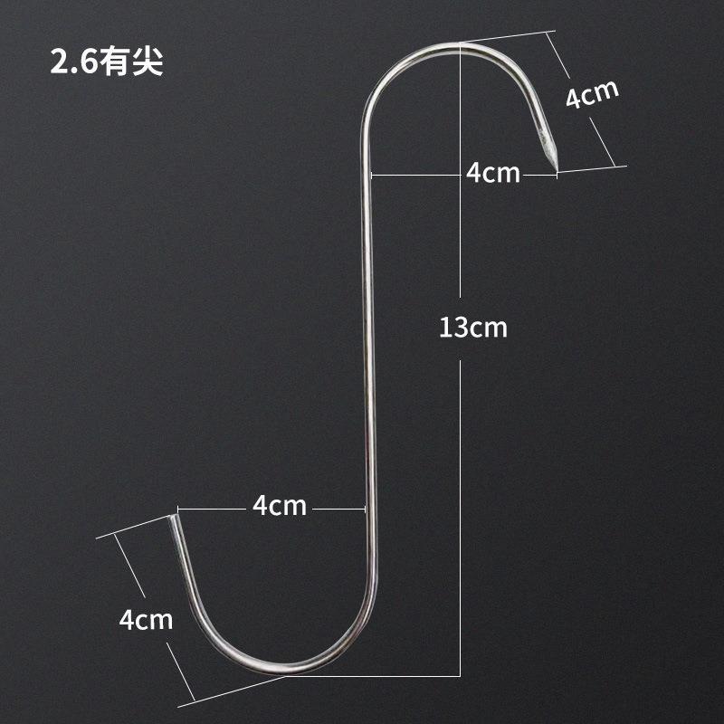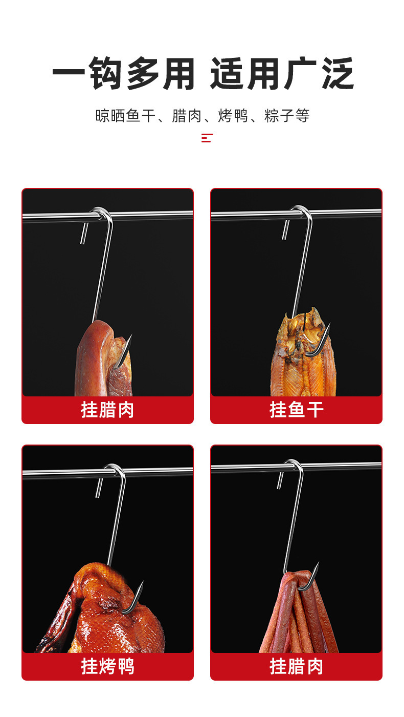 晒腊肉挂钩201不锈钢加粗S型挂钩大号实心挂猪肉香肠烤鸭尖头钩子