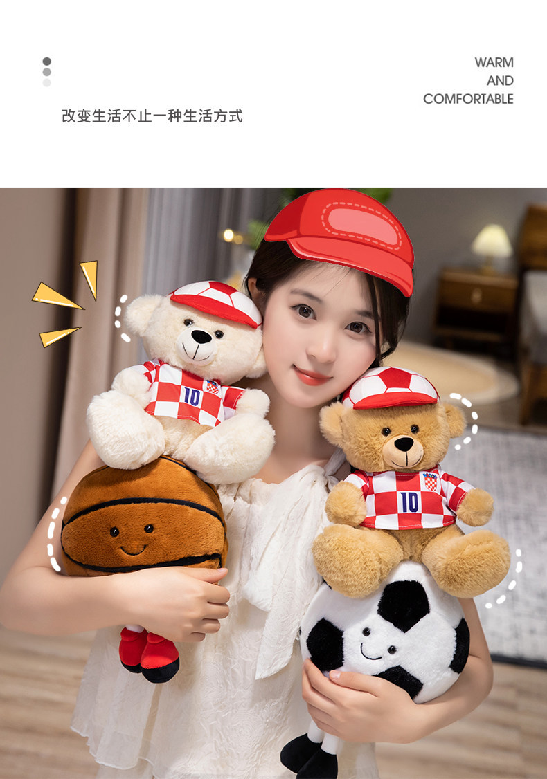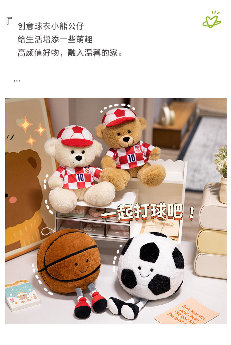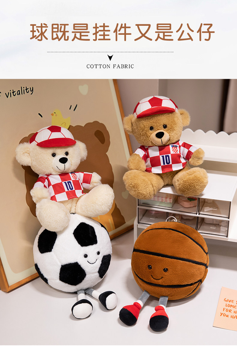 网红趣味球衣小熊运动篮球足球毛绒玩具公仔礼物小熊玩偶批发跨境