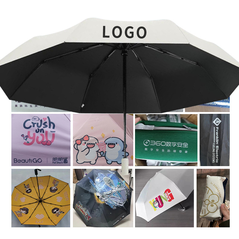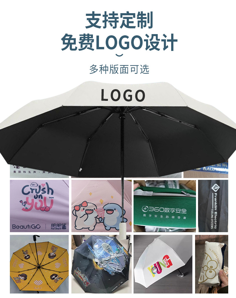 自动雨伞定制图案印logo女士折叠8骨晴雨伞两用黑胶遮阳伞批发