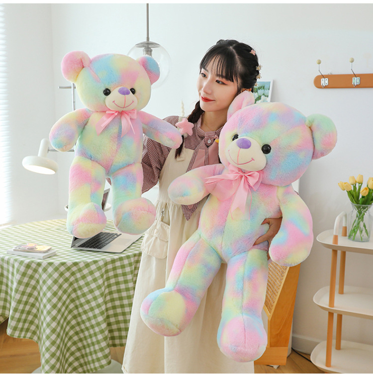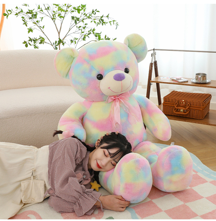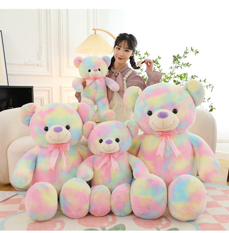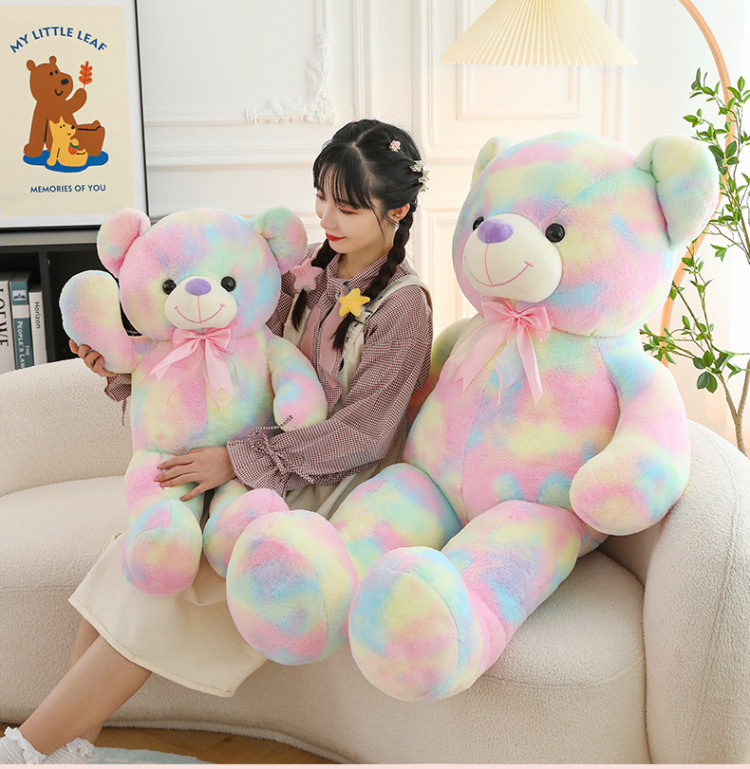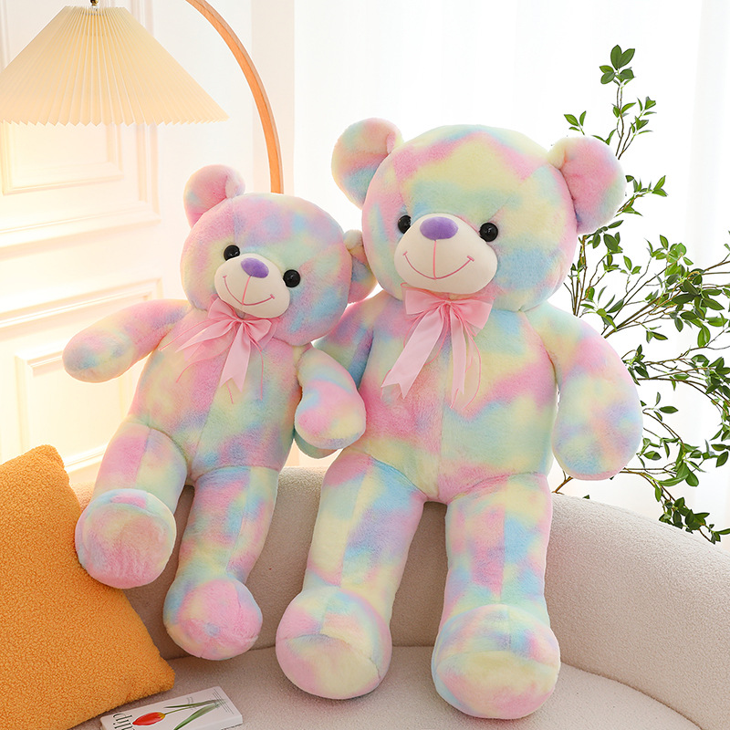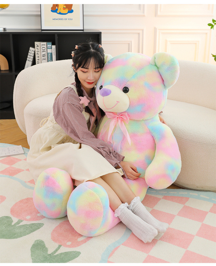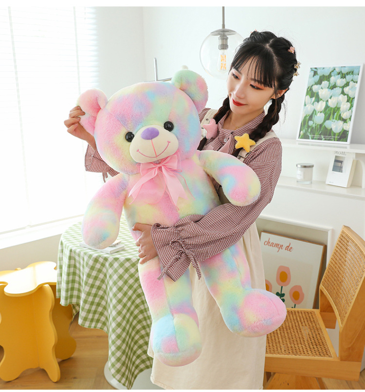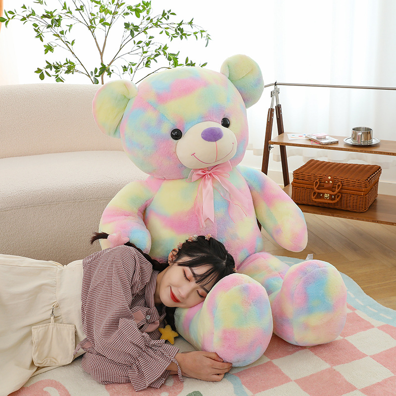 可爱炫彩大熊公仔玩偶毛绒玩具女生睡觉抱枕礼物大号剪刀机批发