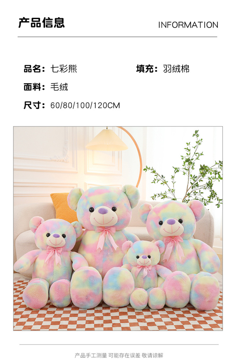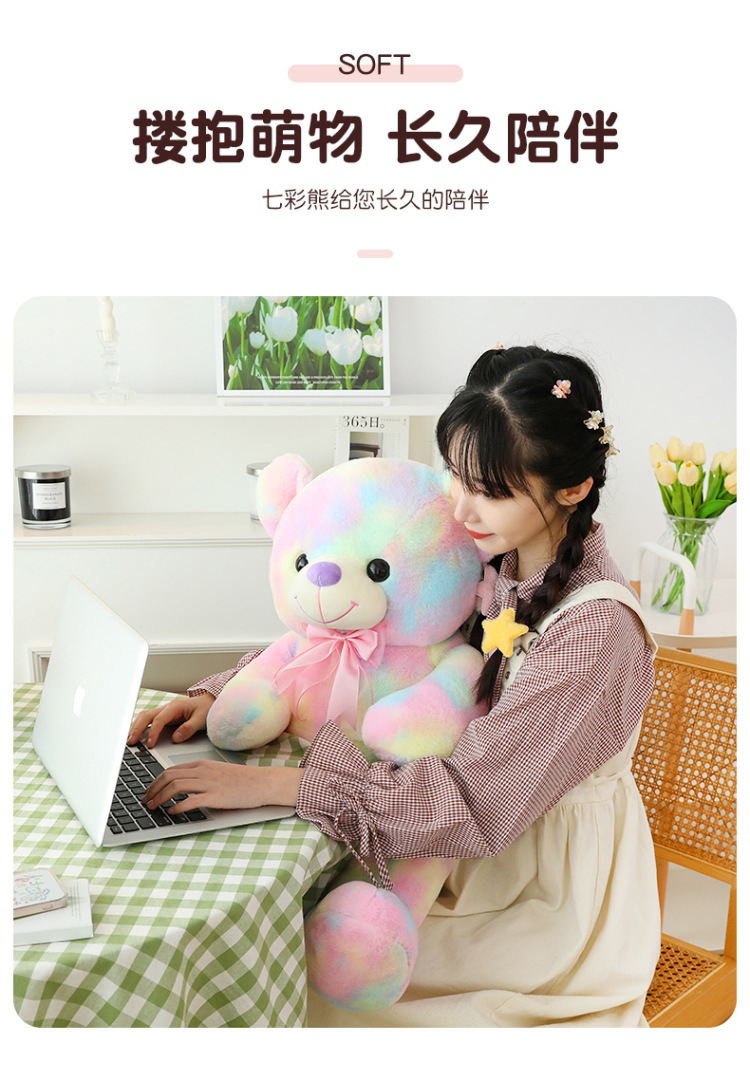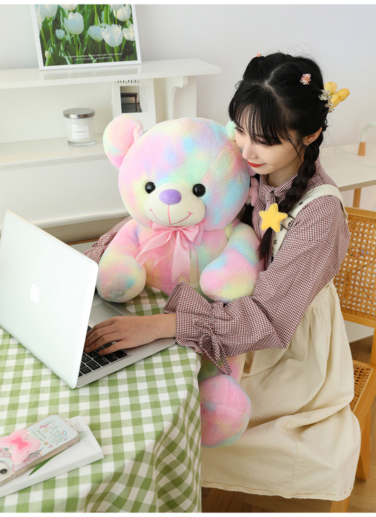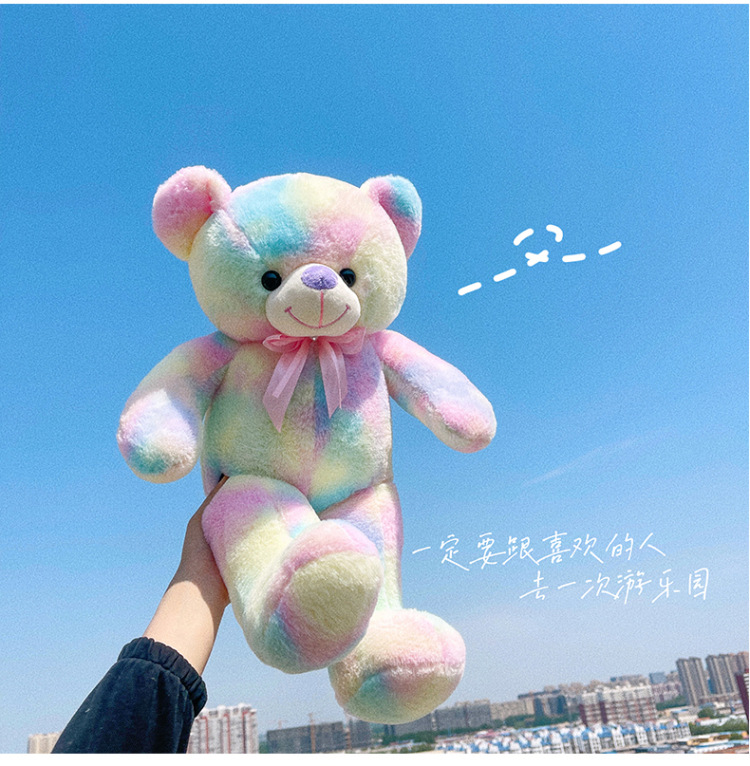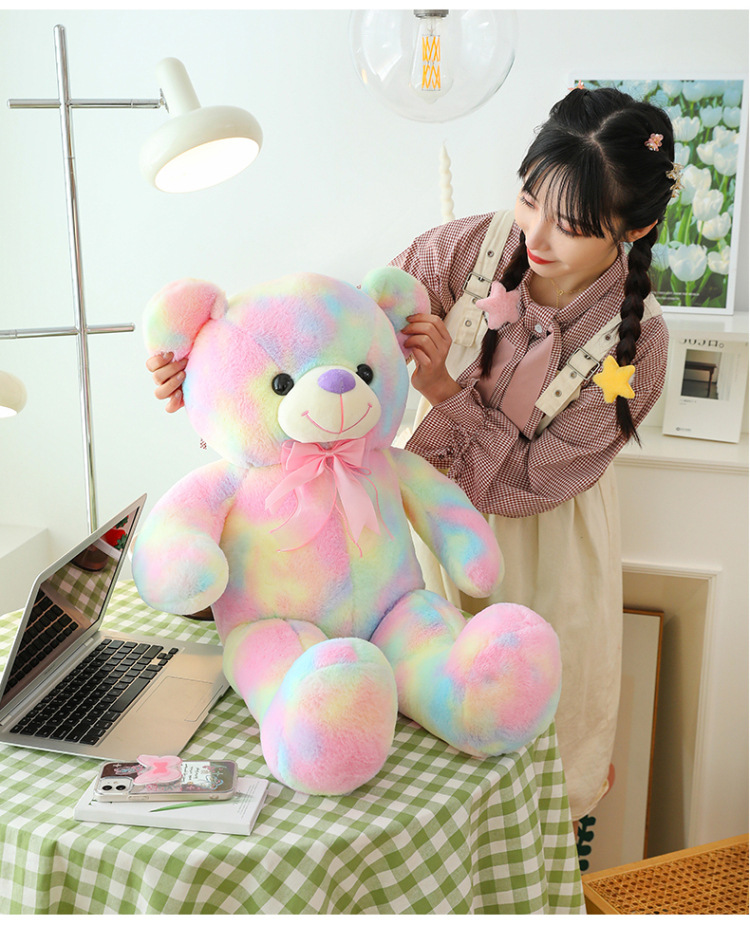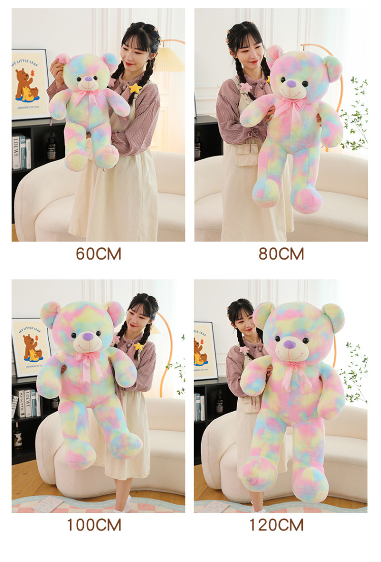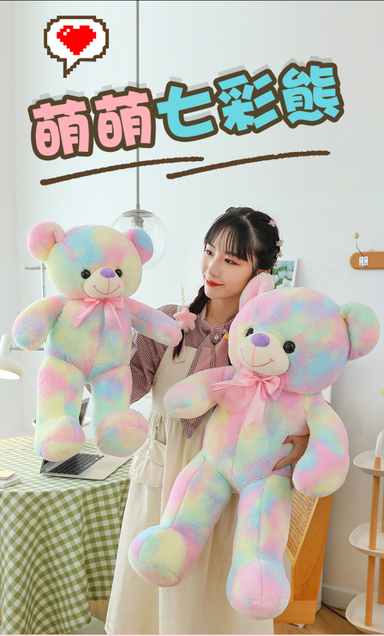 可爱炫彩大熊公仔玩偶毛绒玩具女生睡觉抱枕礼物大号剪刀机批发