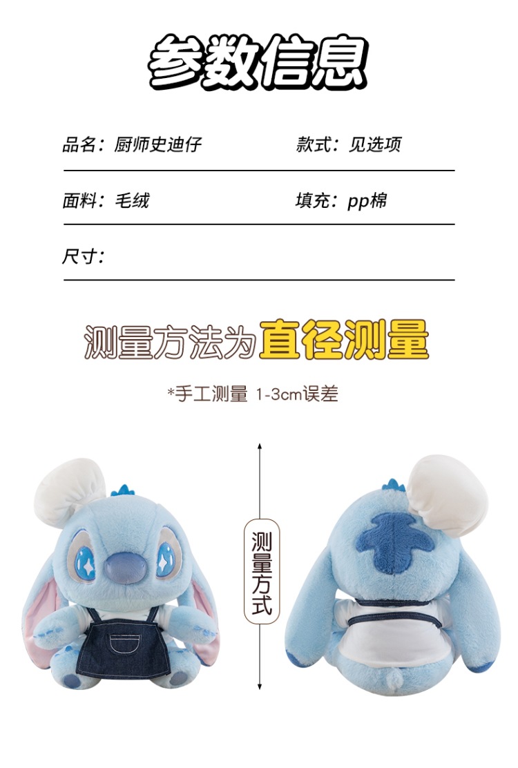 厨师史迪仔毛绒玩具卡通抱枕可爱毛绒玩偶公可爱女生生日礼物批发