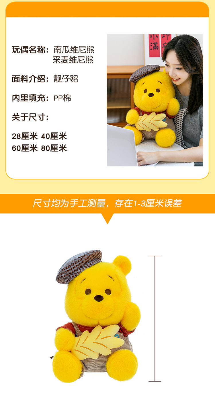 新款南瓜维尼熊采麦熊玩偶毛绒玩具女生礼物可爱小熊外贸布娃娃