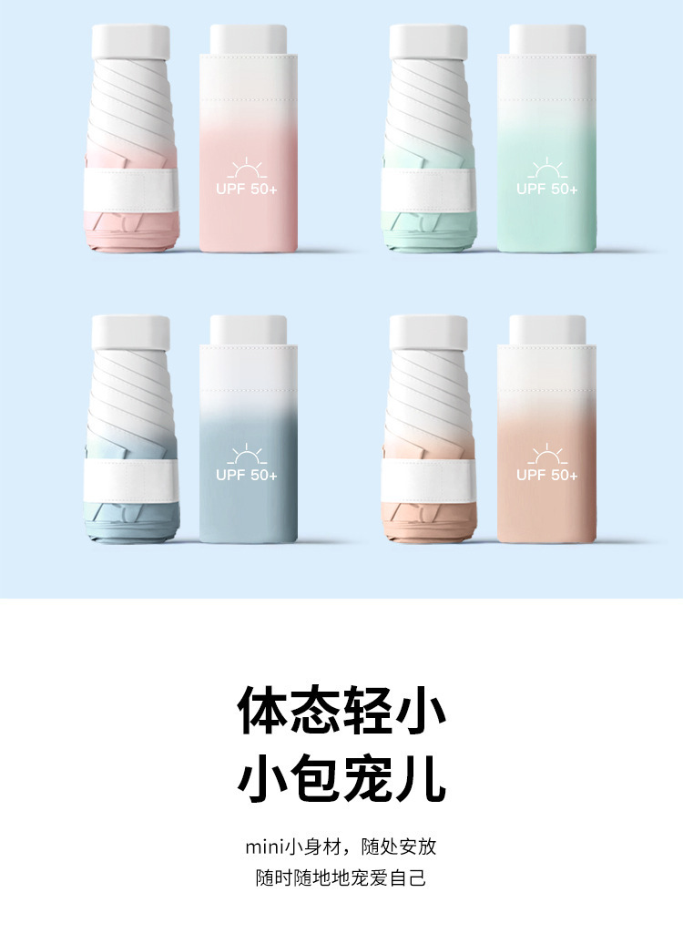 14cm太阳伞防晒迷你渐变胶囊伞折叠遮阳雨伞定制晴雨两用高级感女