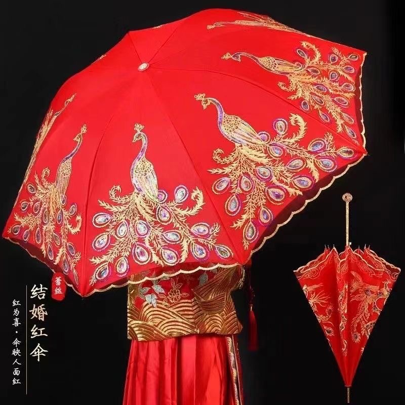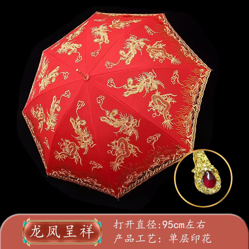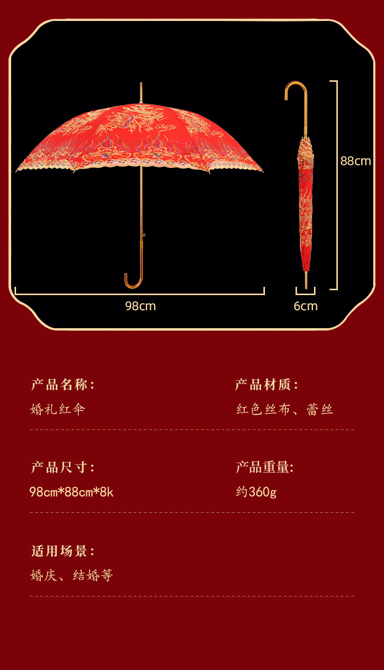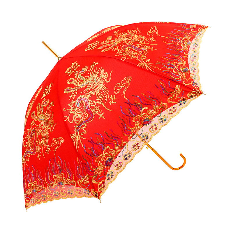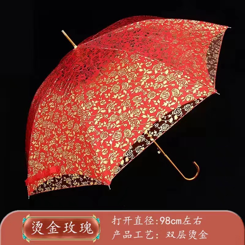 8骨红伞婚庆结婚出嫁伞蕾丝花边婚伞刺绣中式婚礼长柄雨伞新娘伞