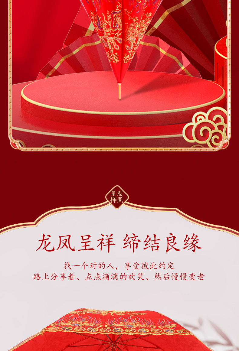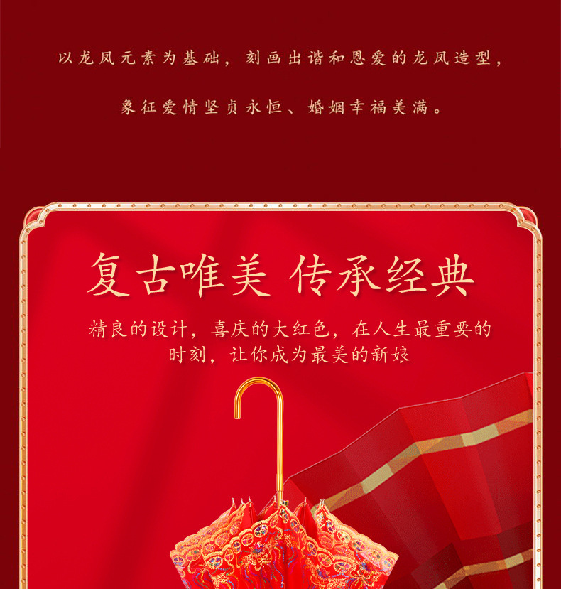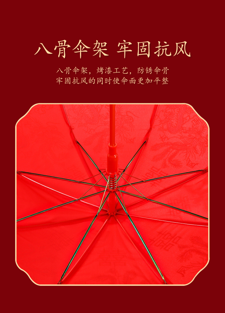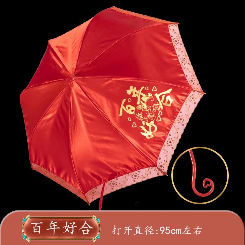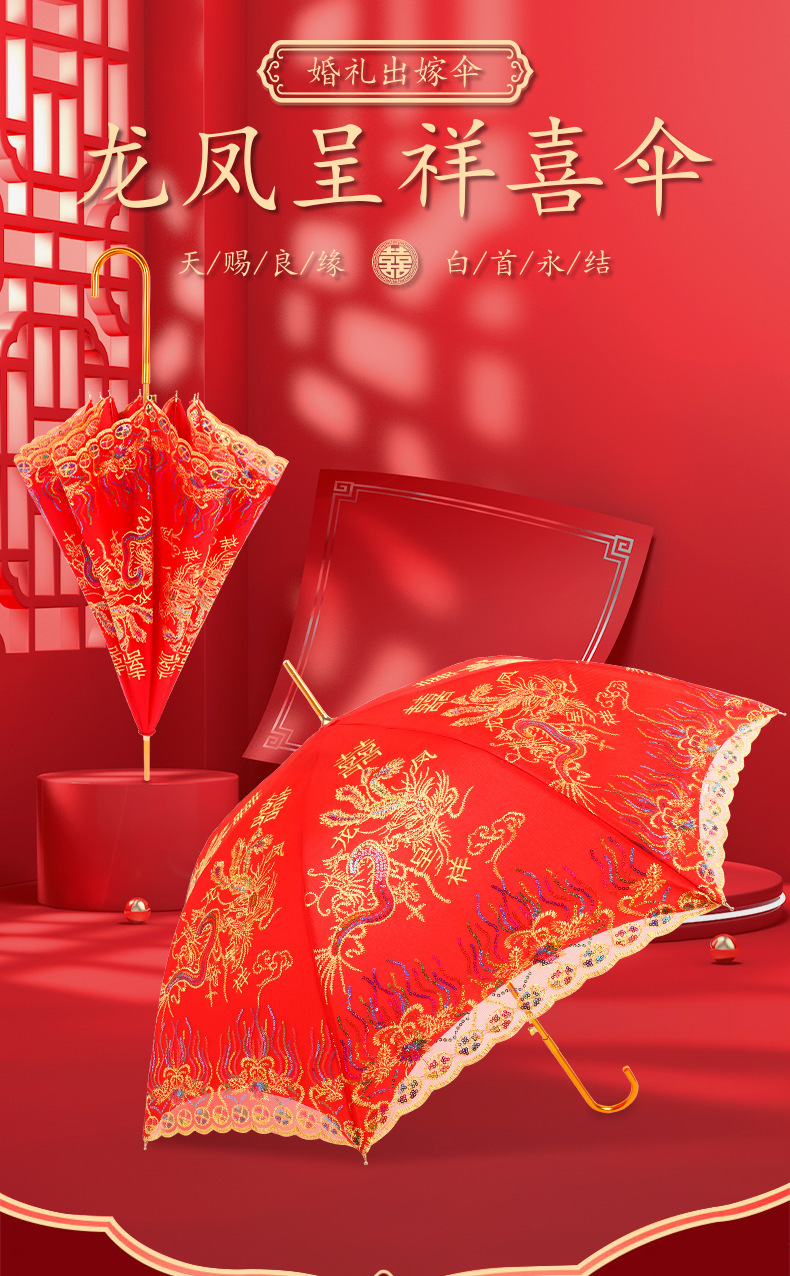 8骨红伞婚庆结婚出嫁伞蕾丝花边婚伞刺绣中式婚礼长柄雨伞新娘伞