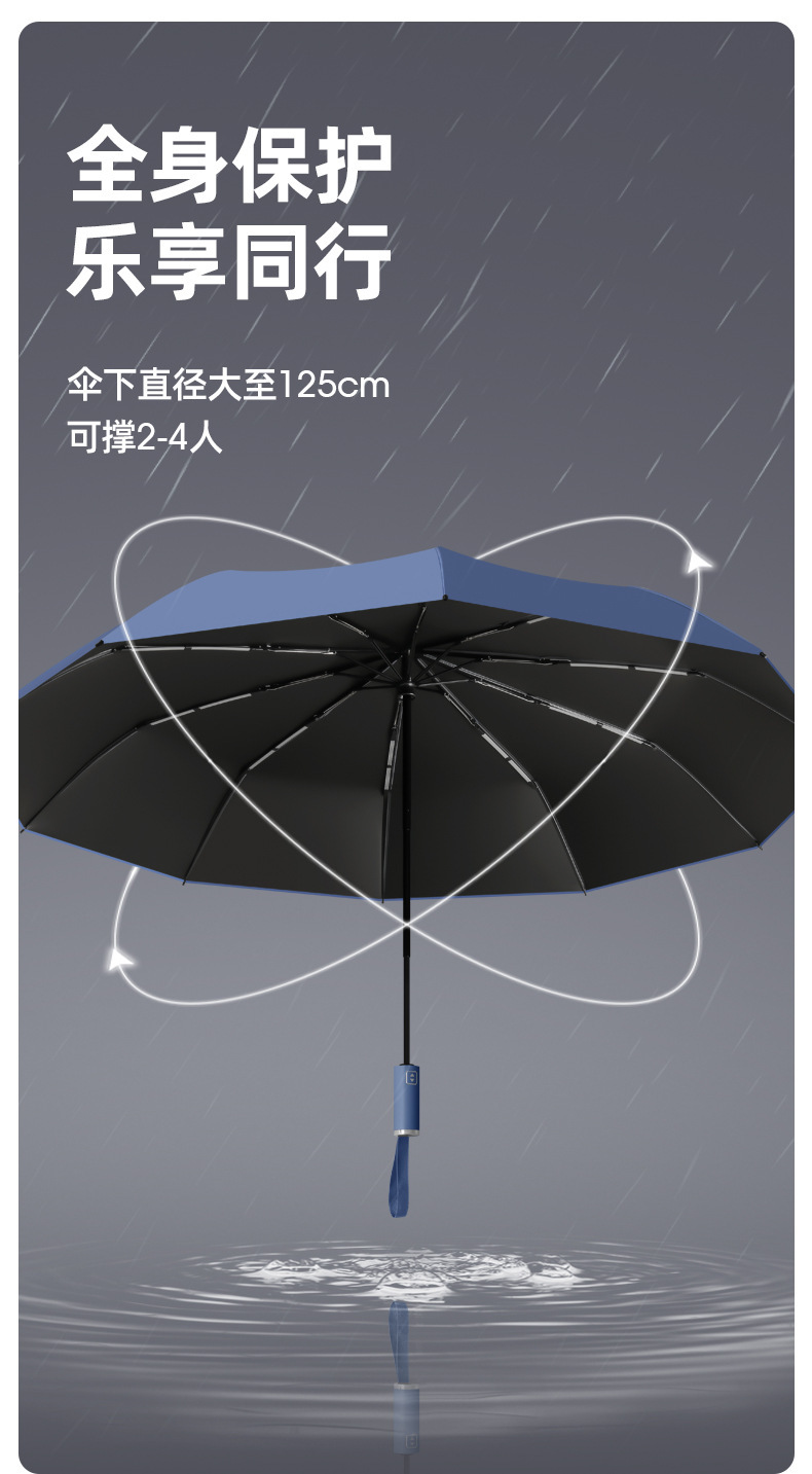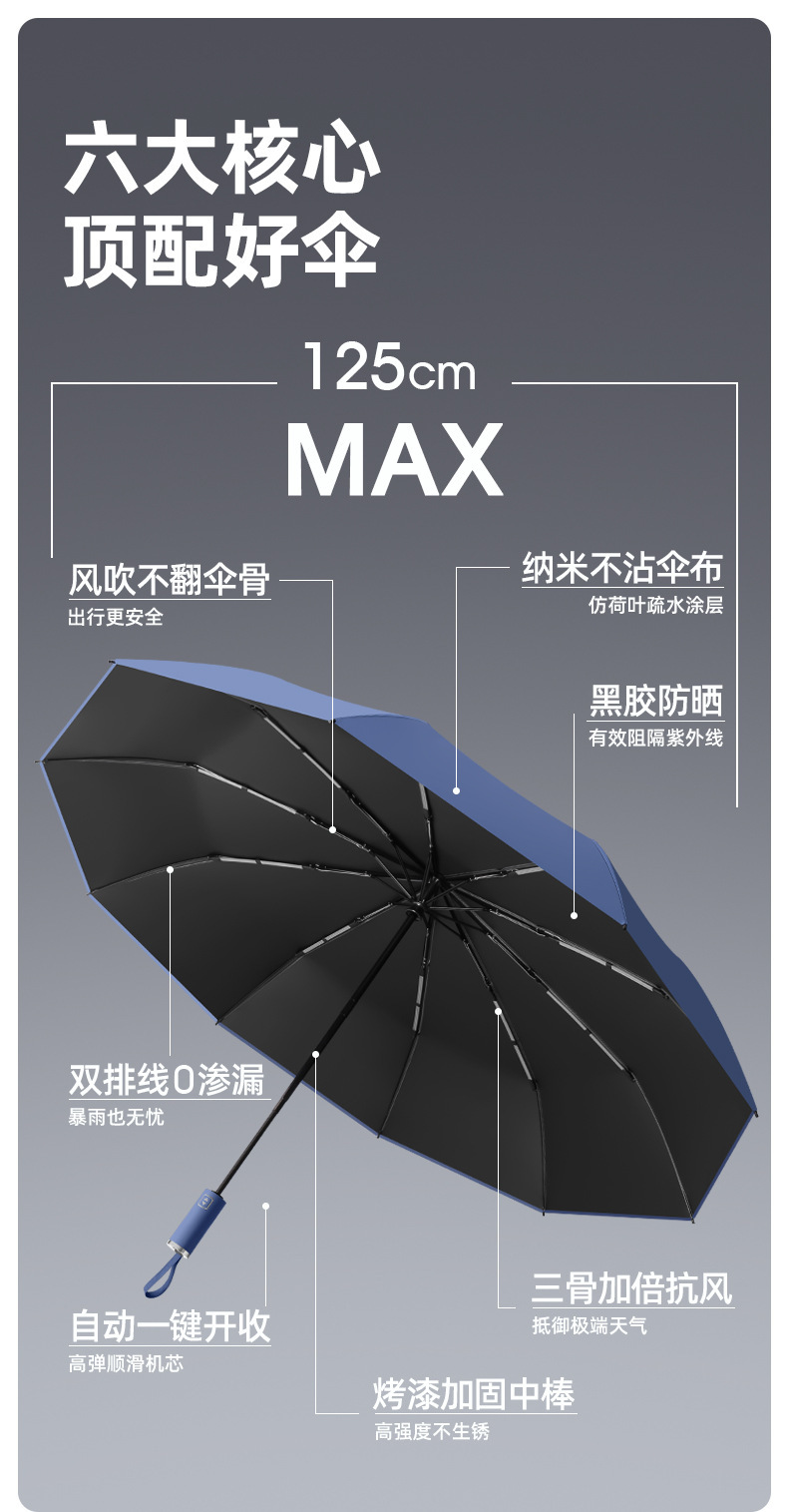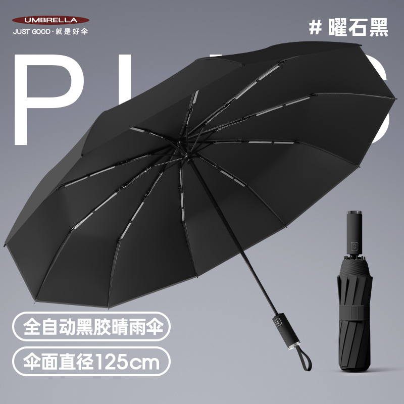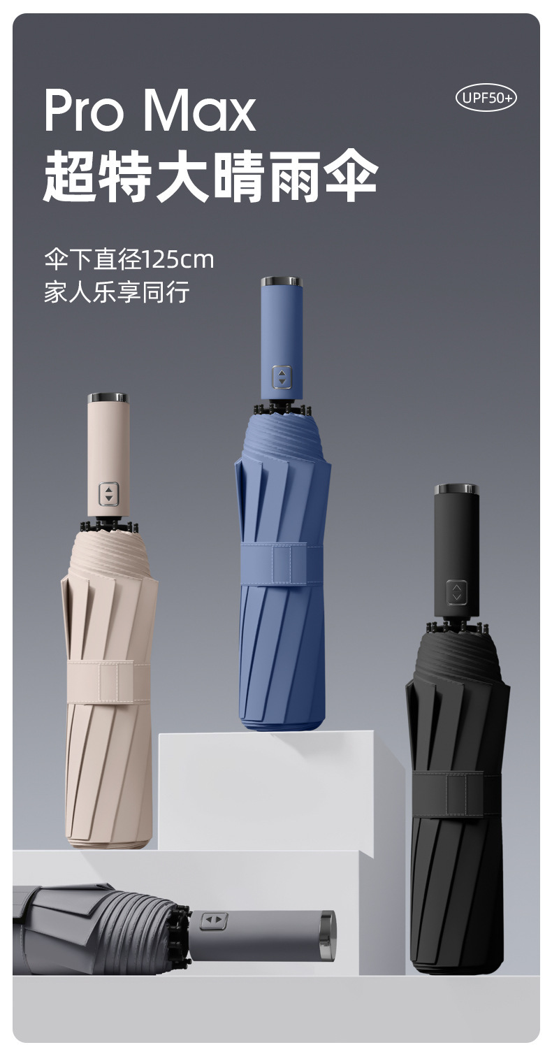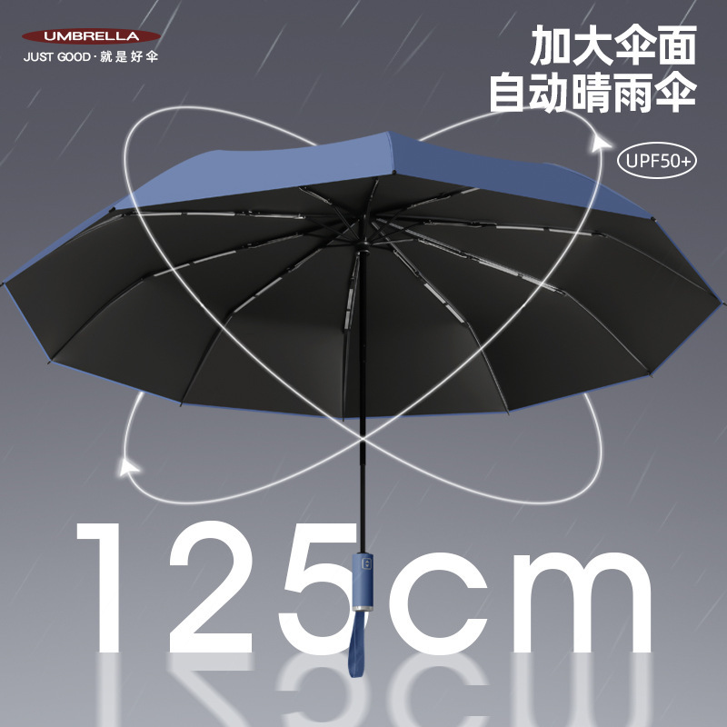 125cm加大自动雨伞定制太阳伞折叠晴雨两用黑胶遮阳广告伞印图案