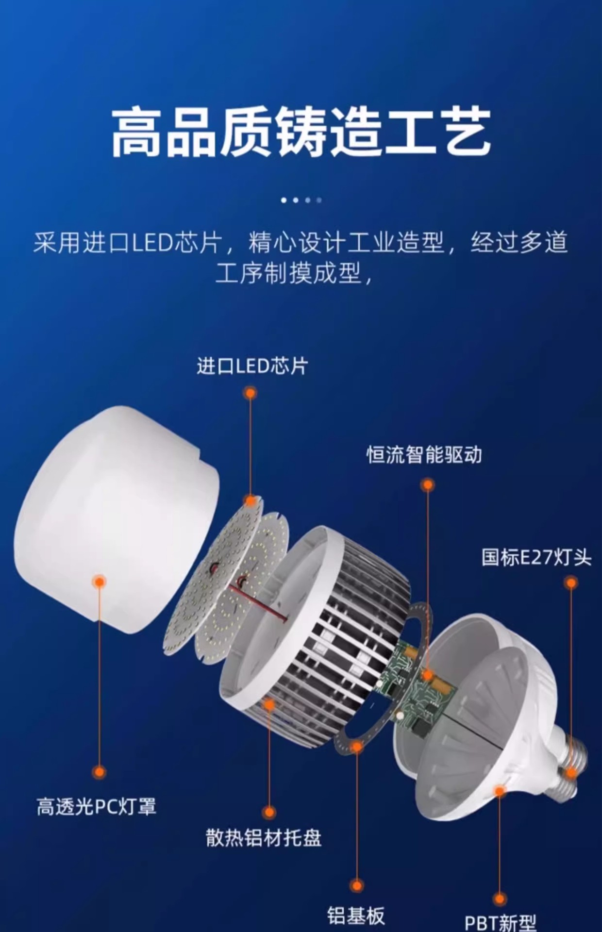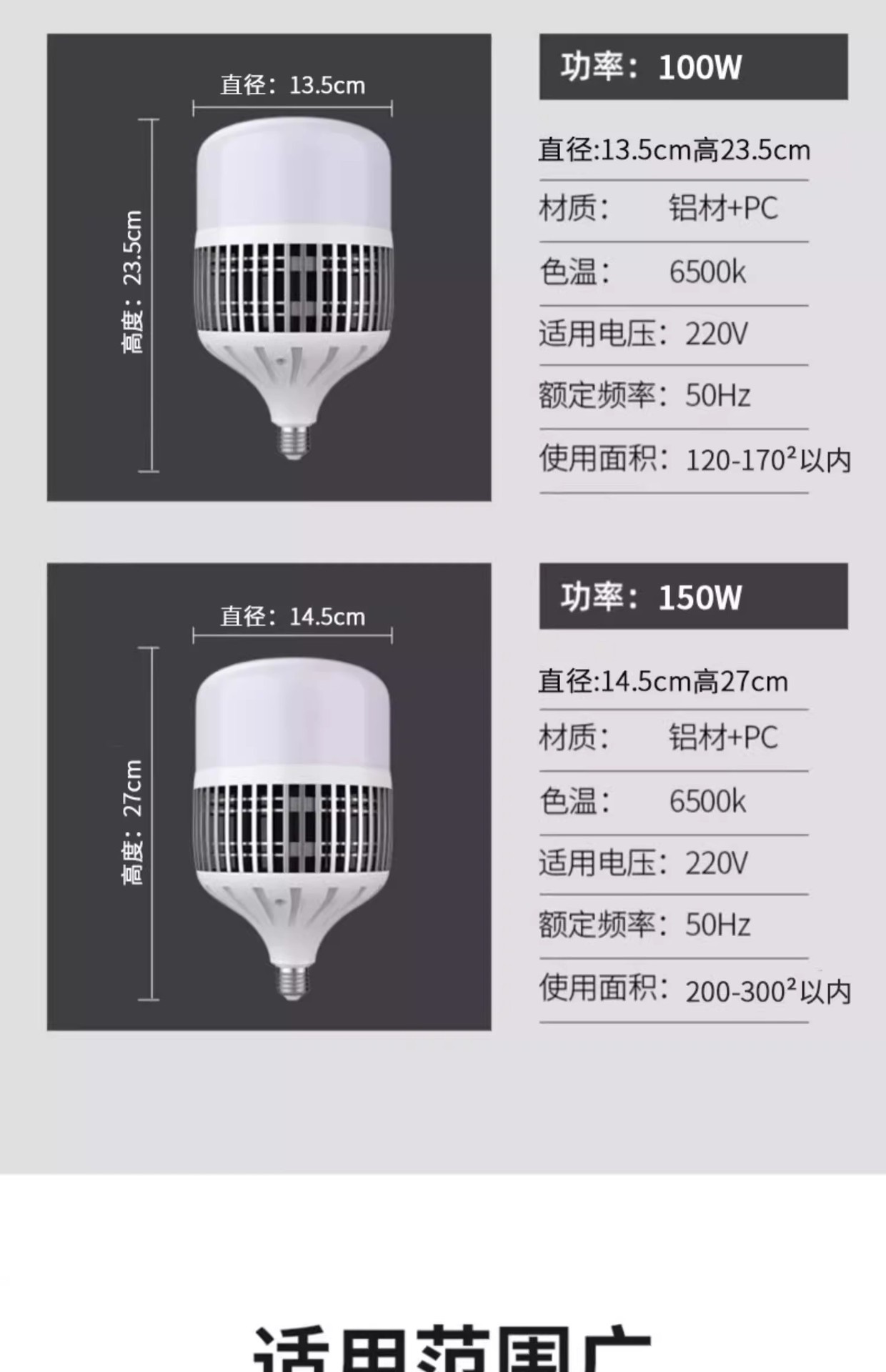 大功率灯泡螺口led节能家用E27超亮强光工地厂房车间照明灯200W