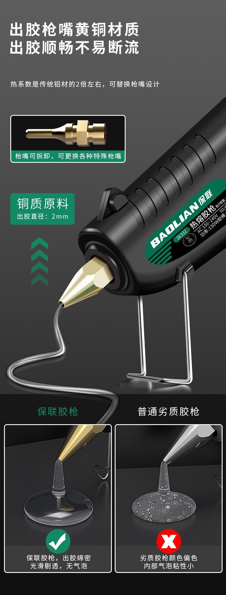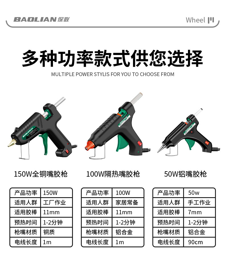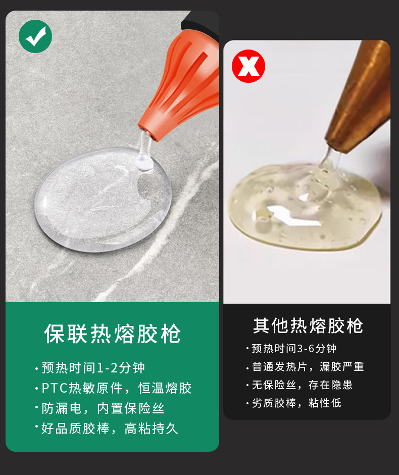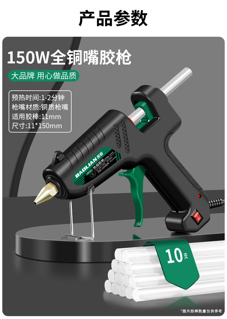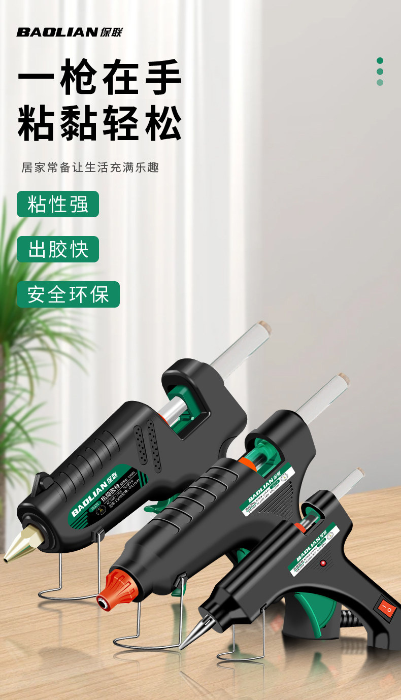 保联手动热熔胶枪手工制作热熔胶枪家用高粘强力胶水条热融胶棒