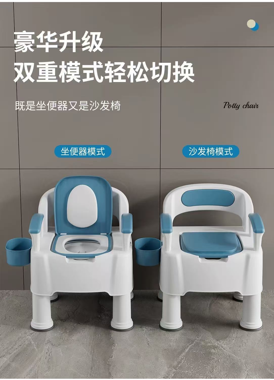 老人坐便器成人可移动马桶家用室内小便椅孕妇便携防臭坐便椅痰盂