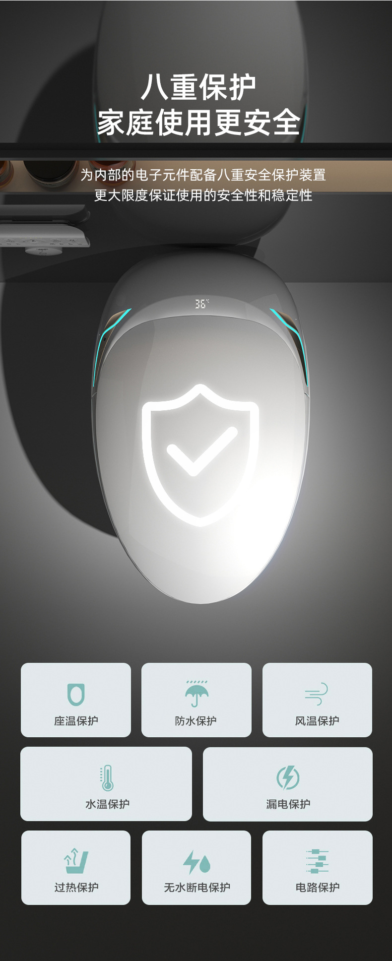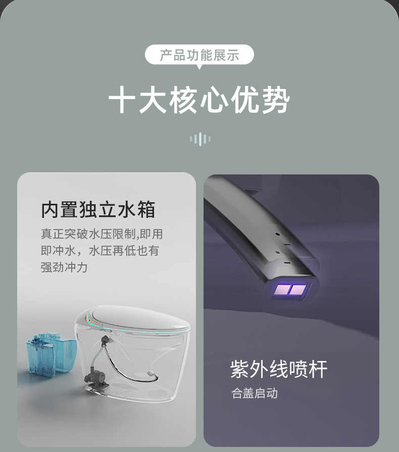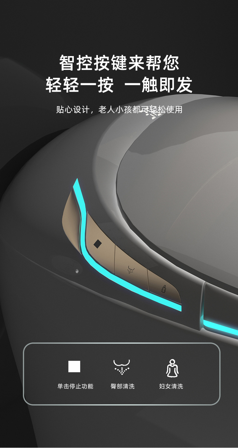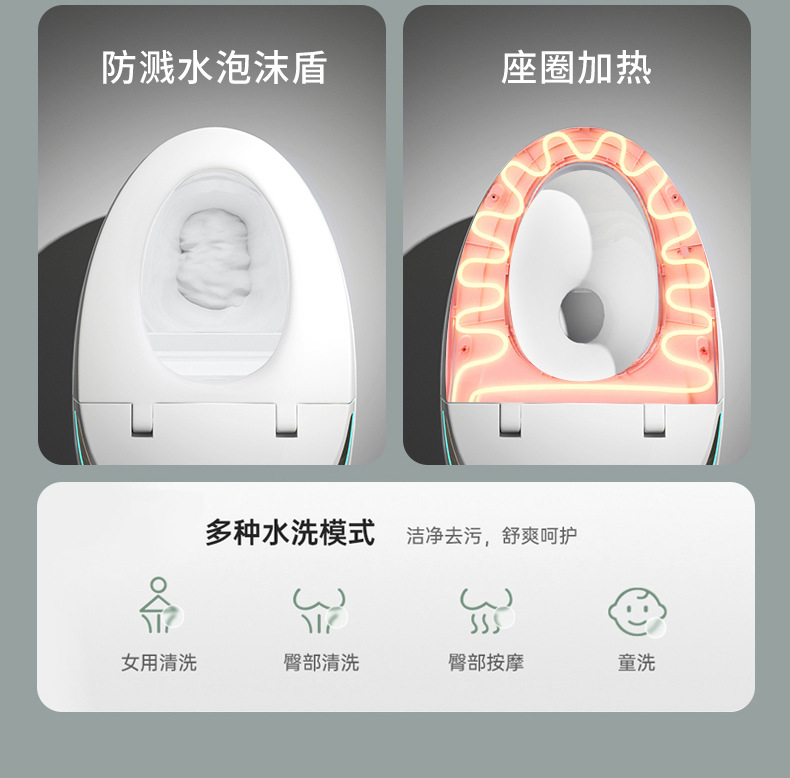 环绕式氛围灯语音全自动智能马桶语音防溅泡沫盾全功能家用坐便器