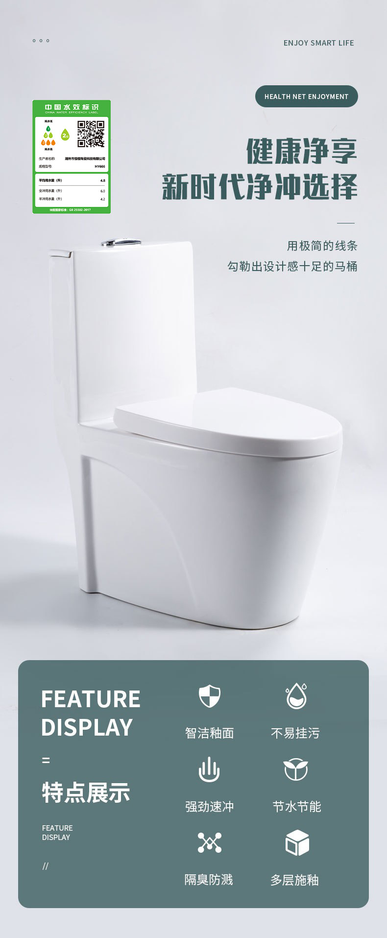 超漩虹吸马桶全管施釉防沾防堵坐便器酒店家用潮州现代简约
