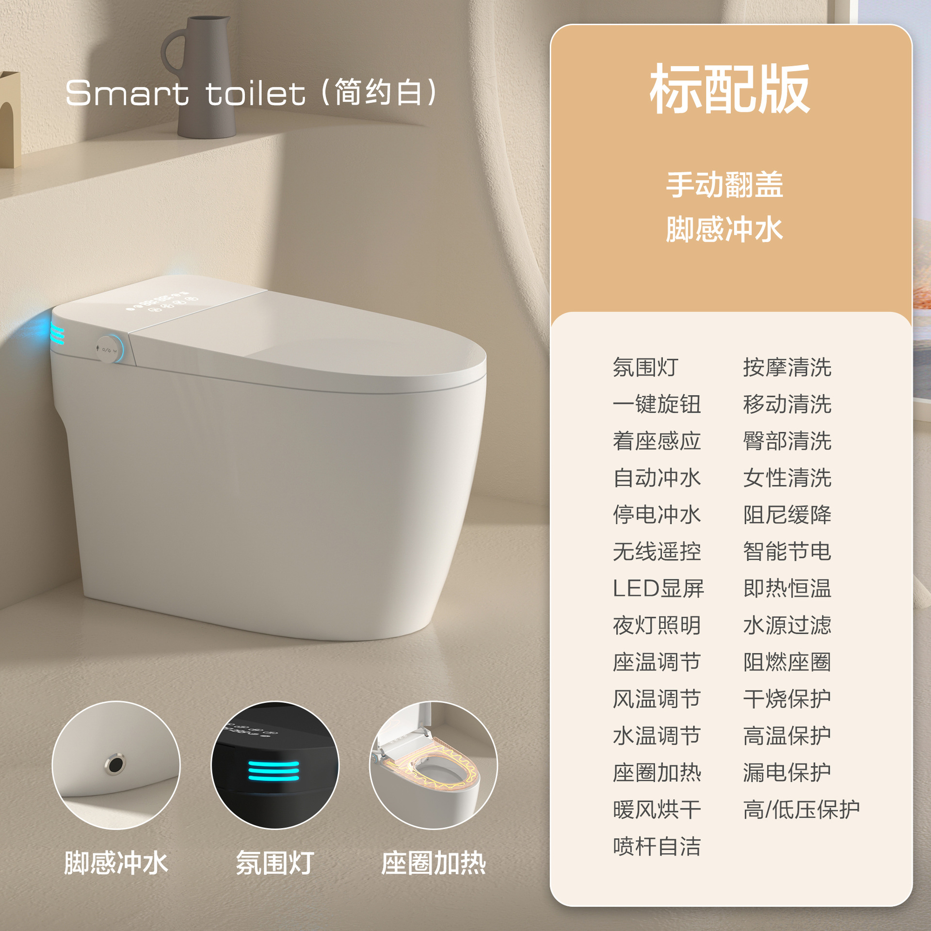 家用智能马桶全自动无水压限制脚感冲水喷射虹吸式坐便器马桶批发