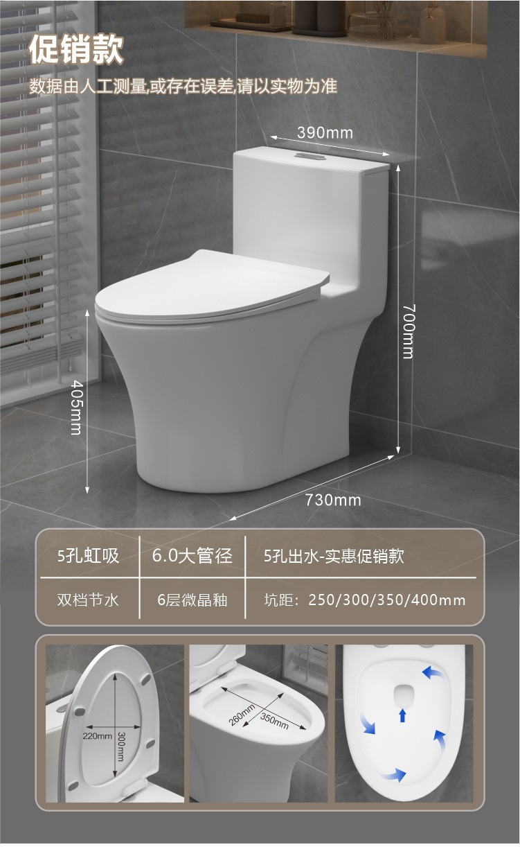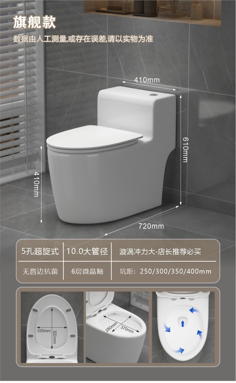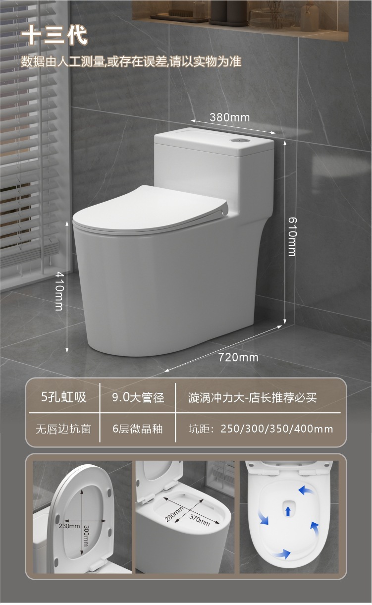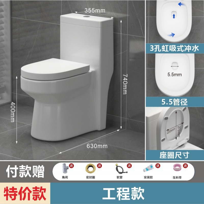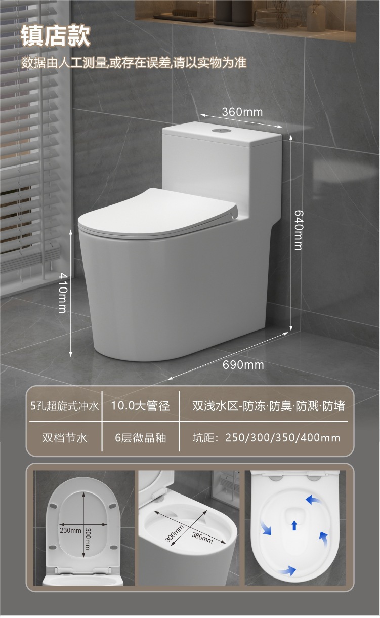 箭.牌马桶家用静音虹吸式一体式防堵防臭卫生间抽水小户型坐便器