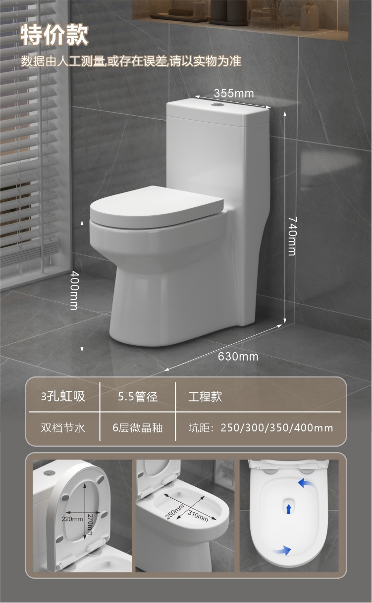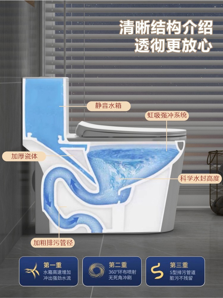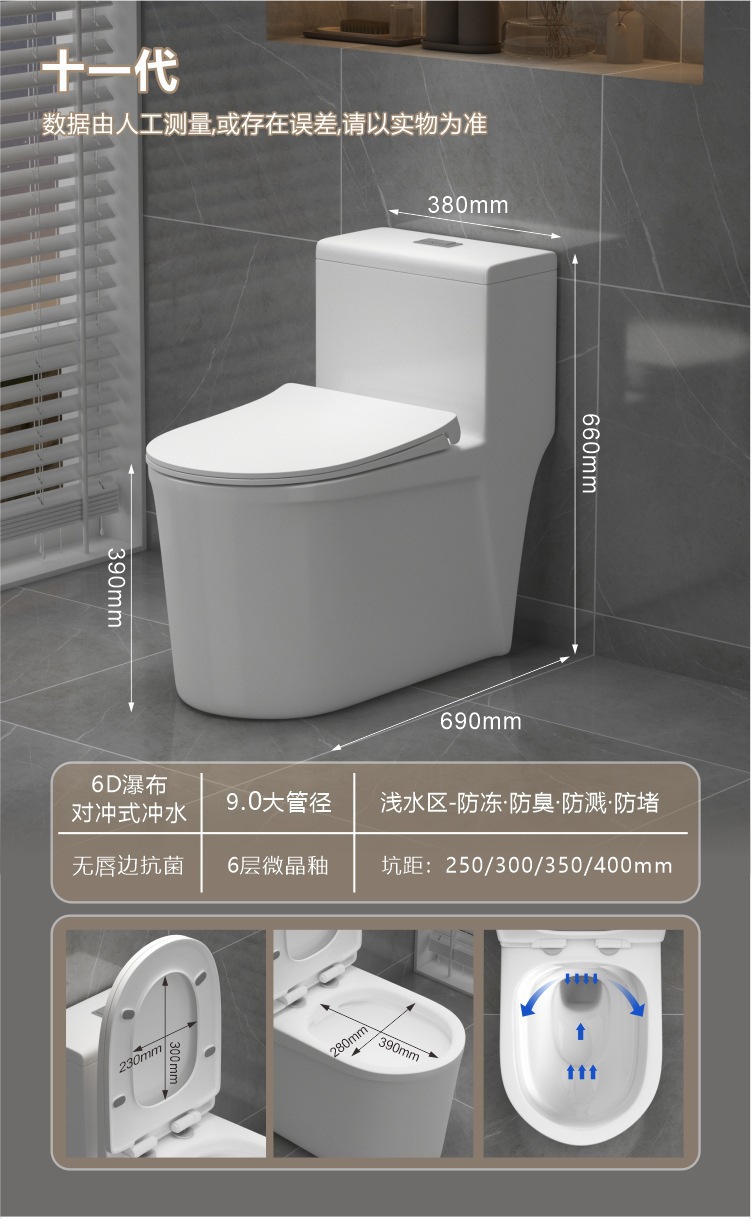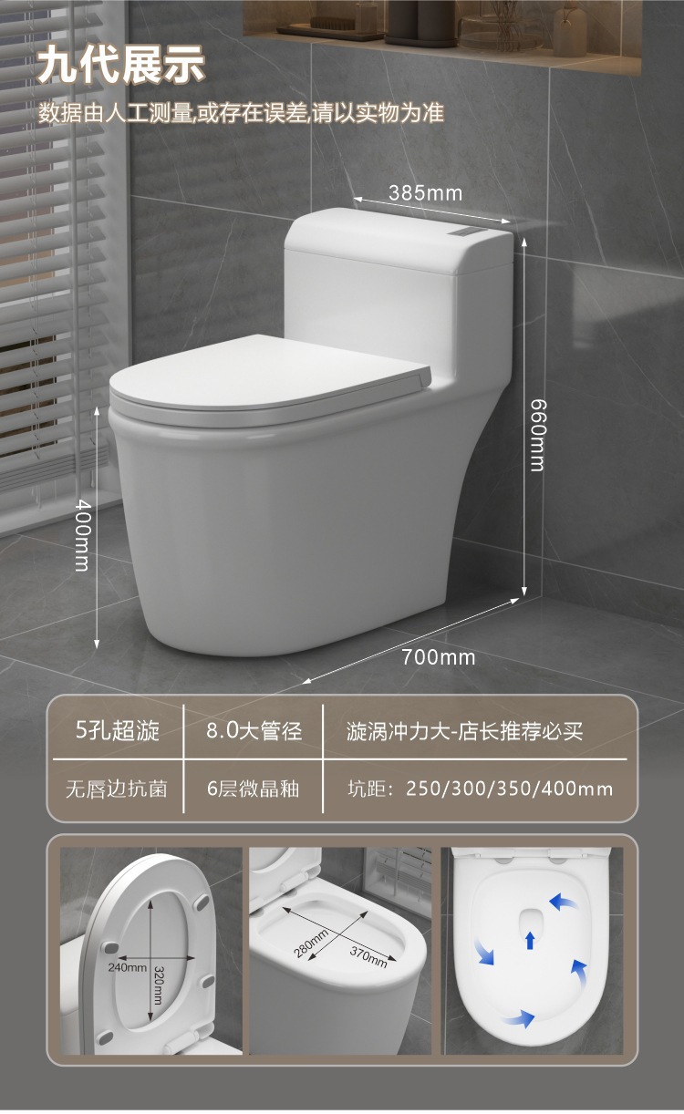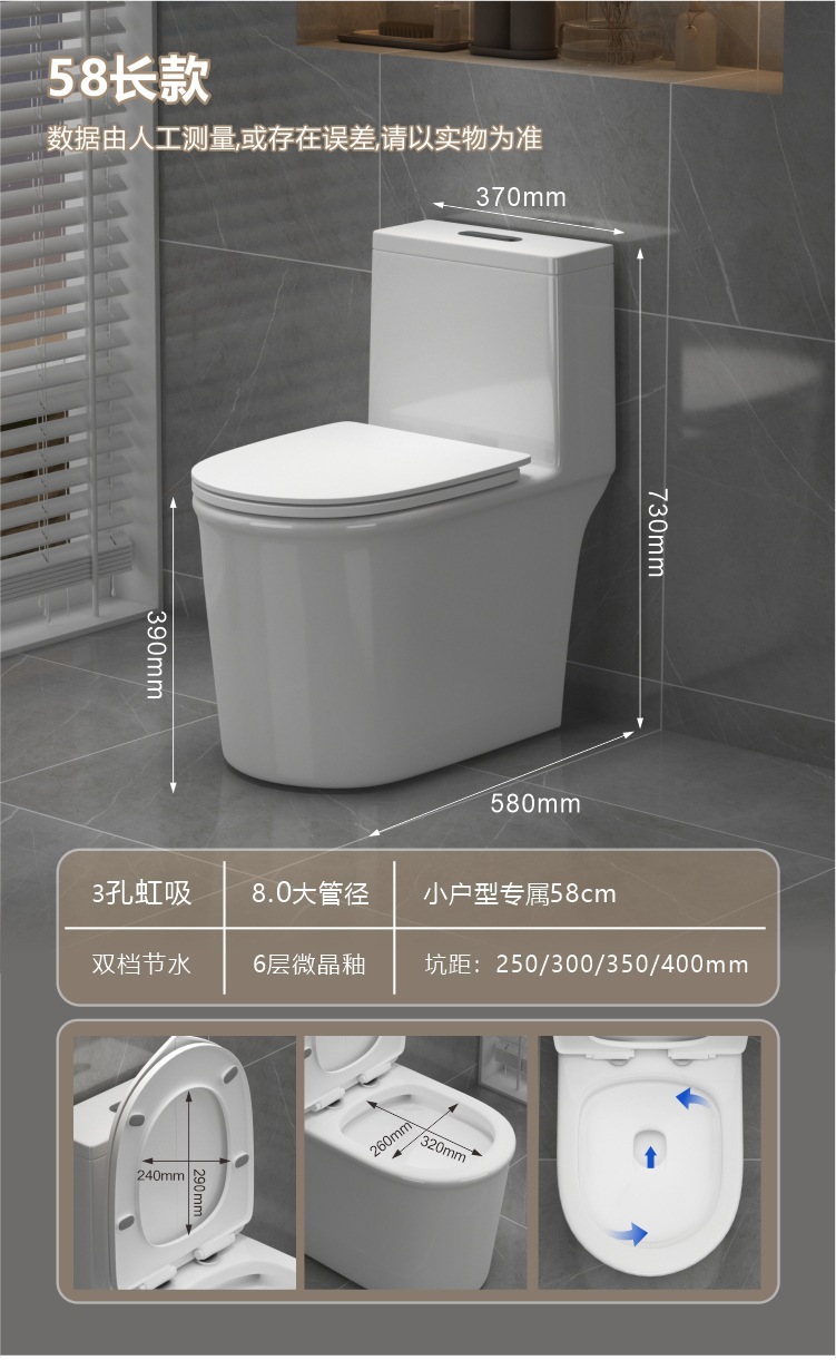 箭.牌马桶家用静音虹吸式一体式防堵防臭卫生间抽水小户型坐便器