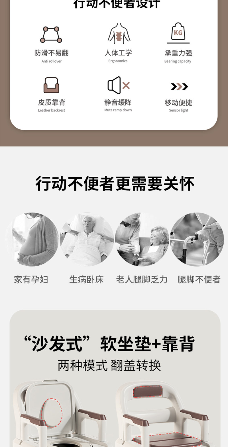 老人坐便器可移动马桶老年人坐便椅家用室内孕妇成人便携防滑防臭