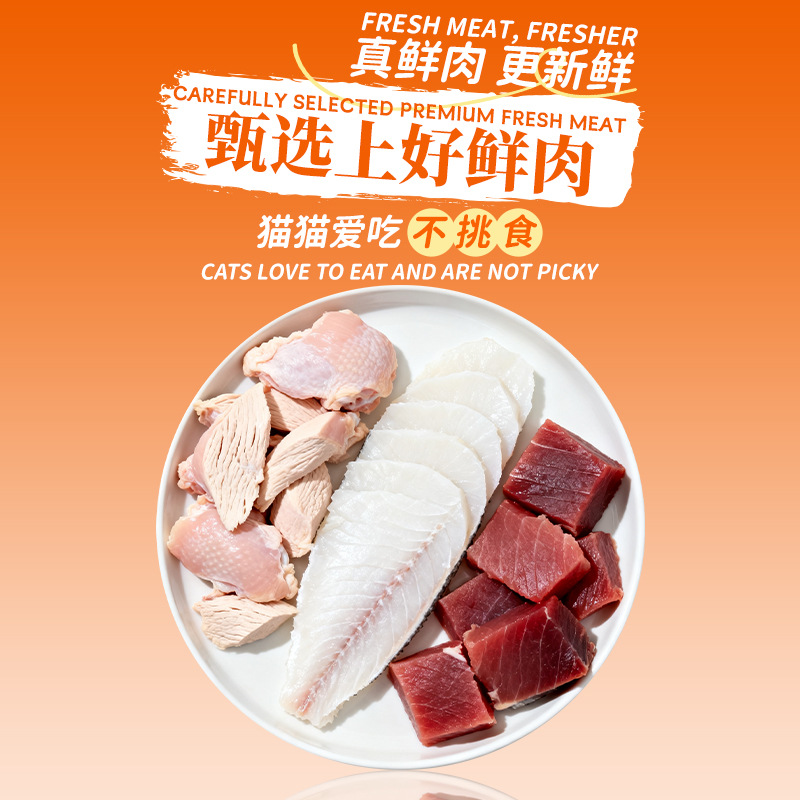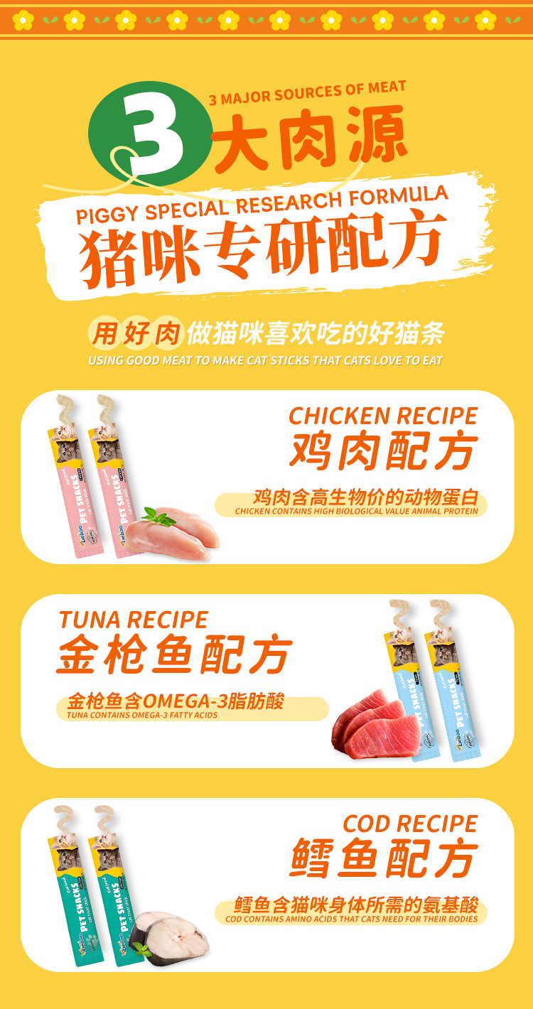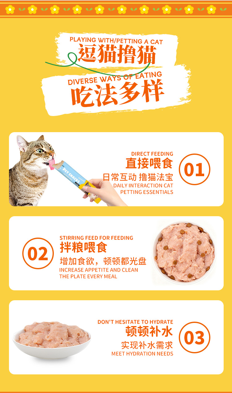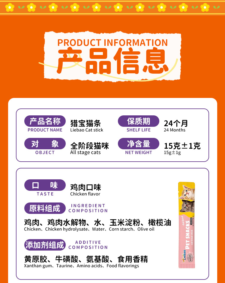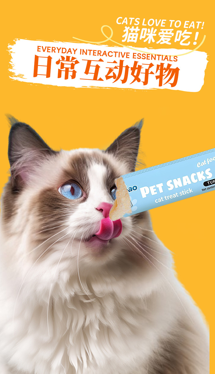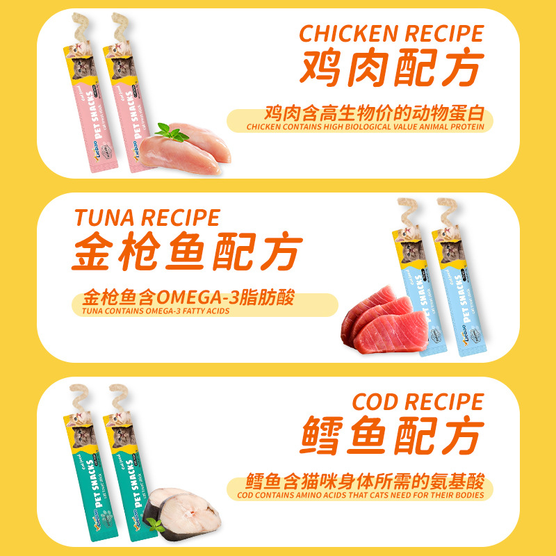 猎宝猫条跨境外贸英文宠物猫零食湿粮鲜肉猫饭营养条整箱批发猫条