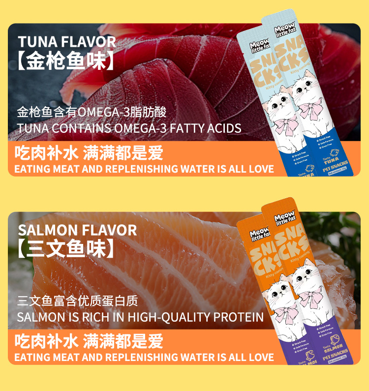 跨境英文版跨境宠物零食条猫咪零食营养补水猫罐头湿粮批发猫条