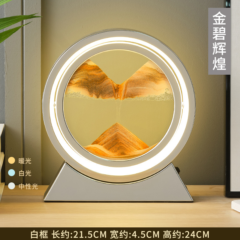 创意跨境3D流沙画小夜灯摆件氛围灯礼物网红款解压玻璃工艺品台灯