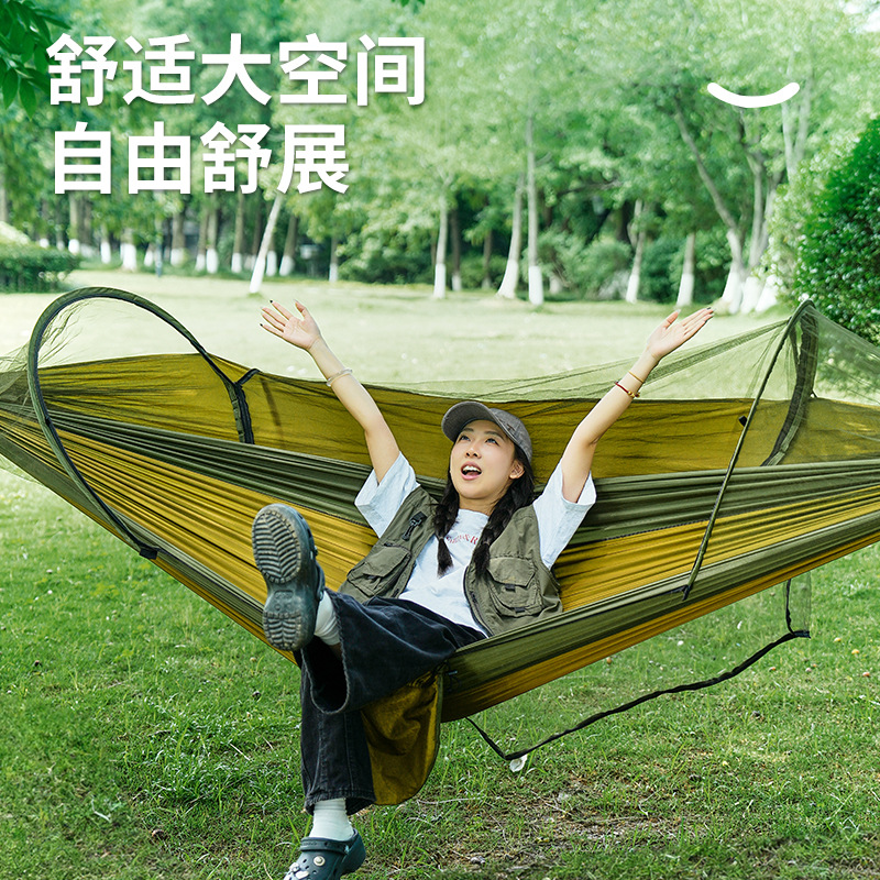 户外野营休闲防蚊虫吊床跨境热销秋千自动速开蚊帐吊床单双人