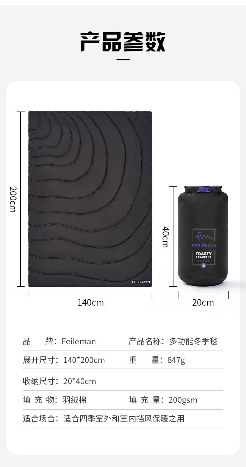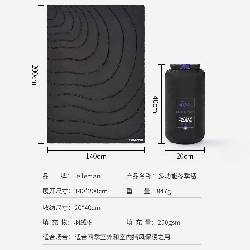 跨境专供秋冬羽绒棉野营毯加厚保暖防水防潮户外露营野餐垫便携