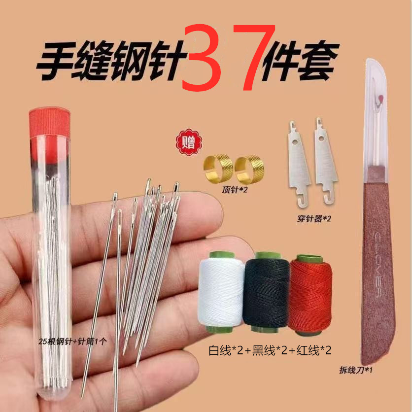 现货 密文 34件套大鼻子大眼钢针细长手工被子缝衣针缝纫工具套装