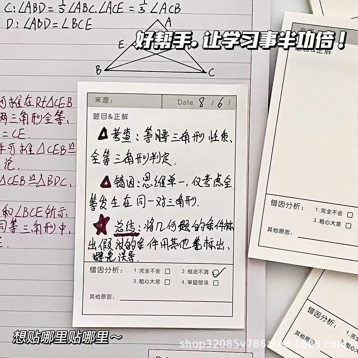 错题便利贴多功能学生试题改错贴纸自粘备忘纸改错订正加厚错题本