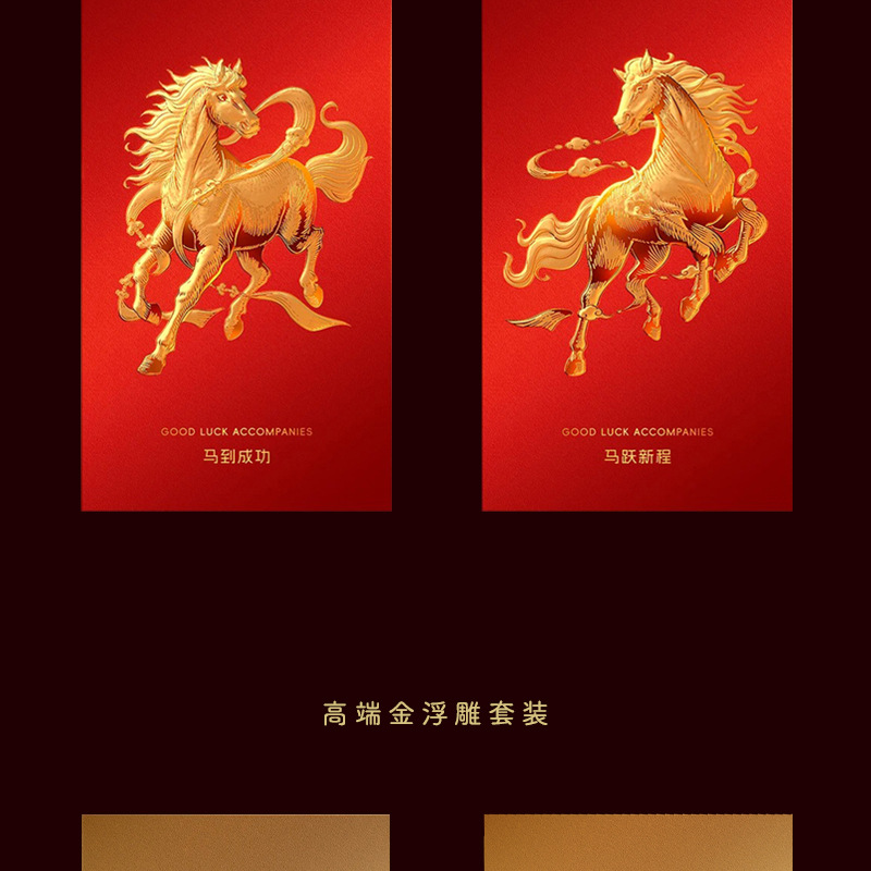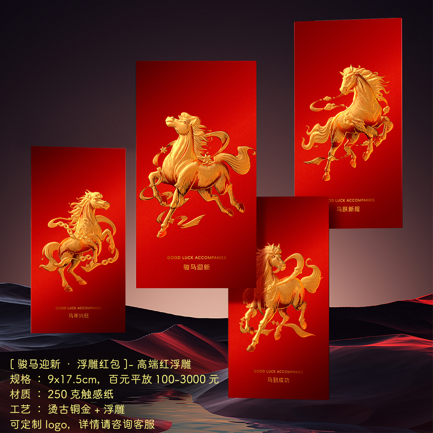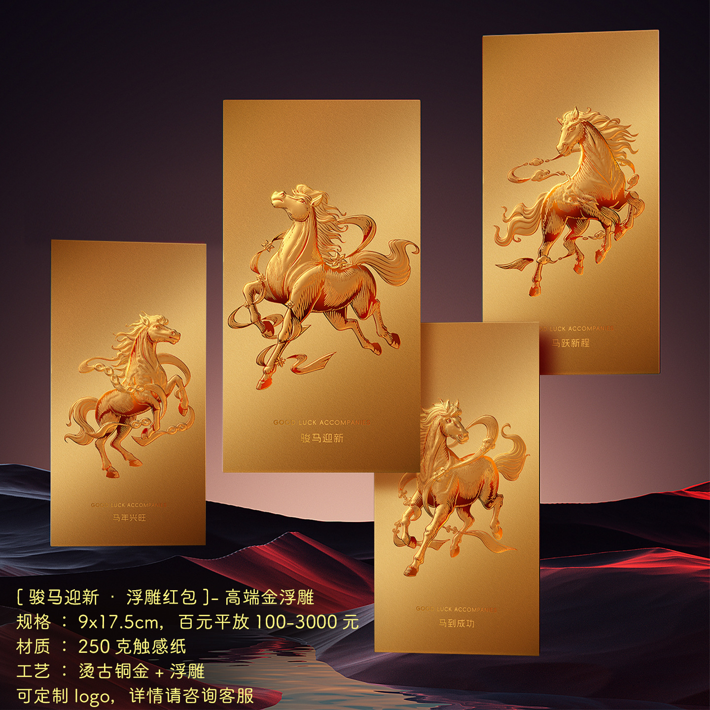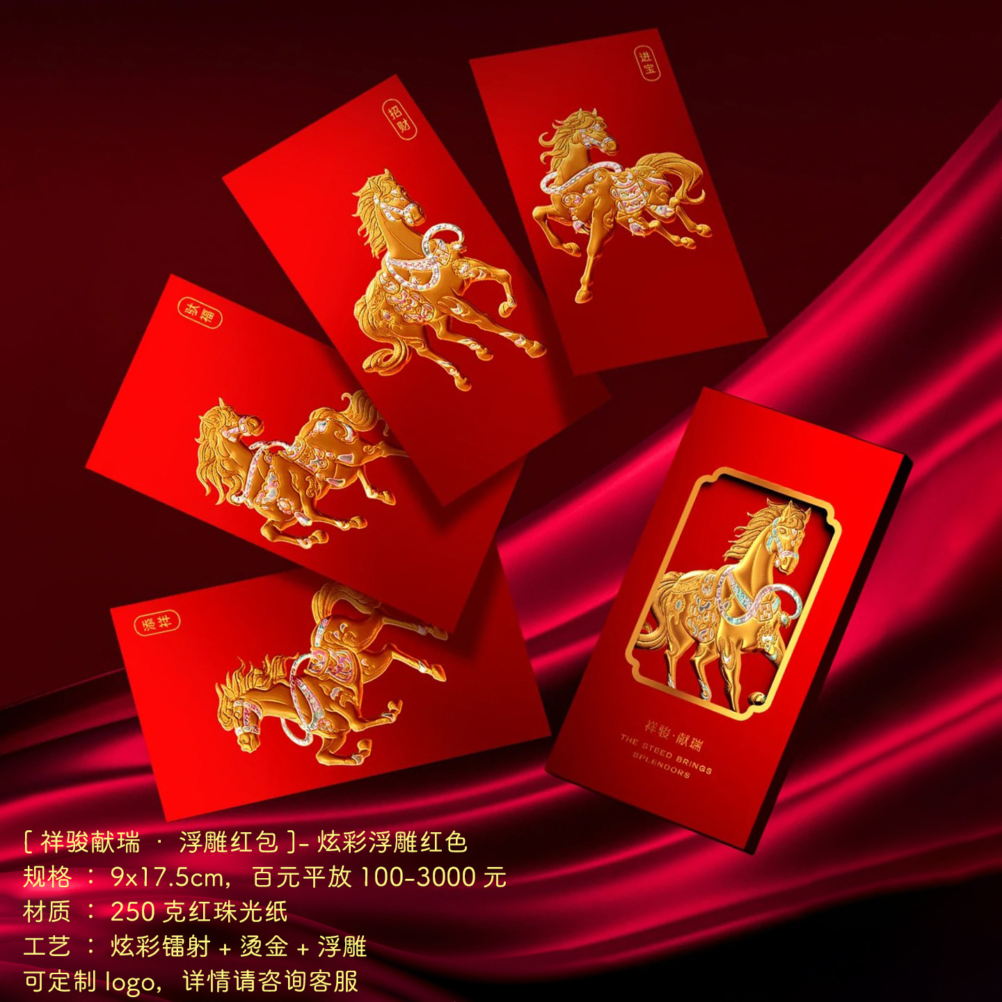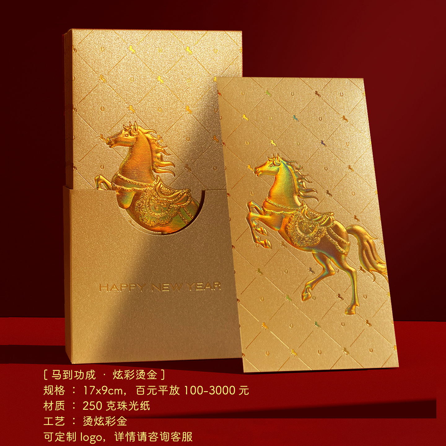 2026新年马跃春晖红包炫彩浮雕烫金利是封企业红包袋创意可印LOGO