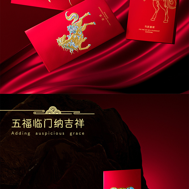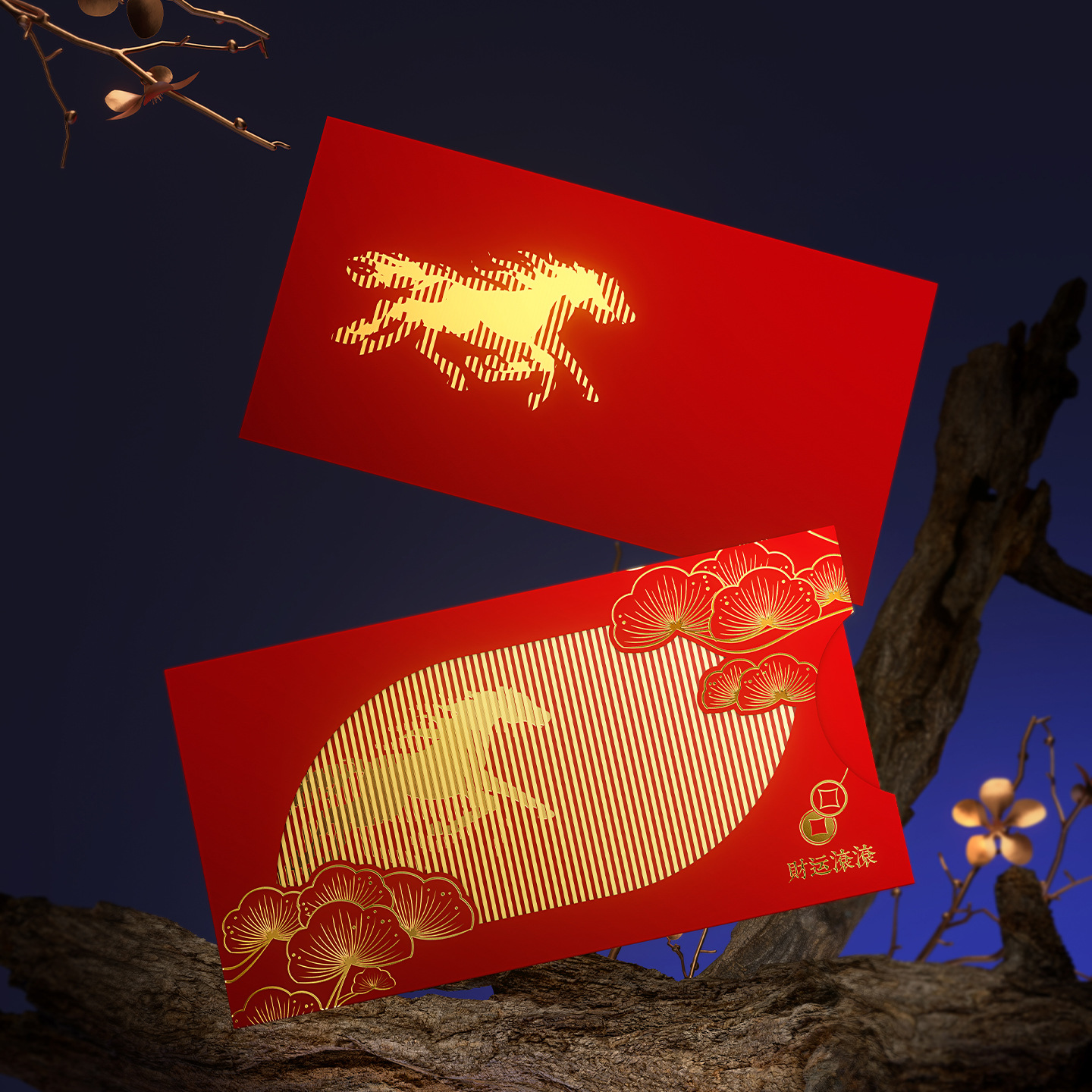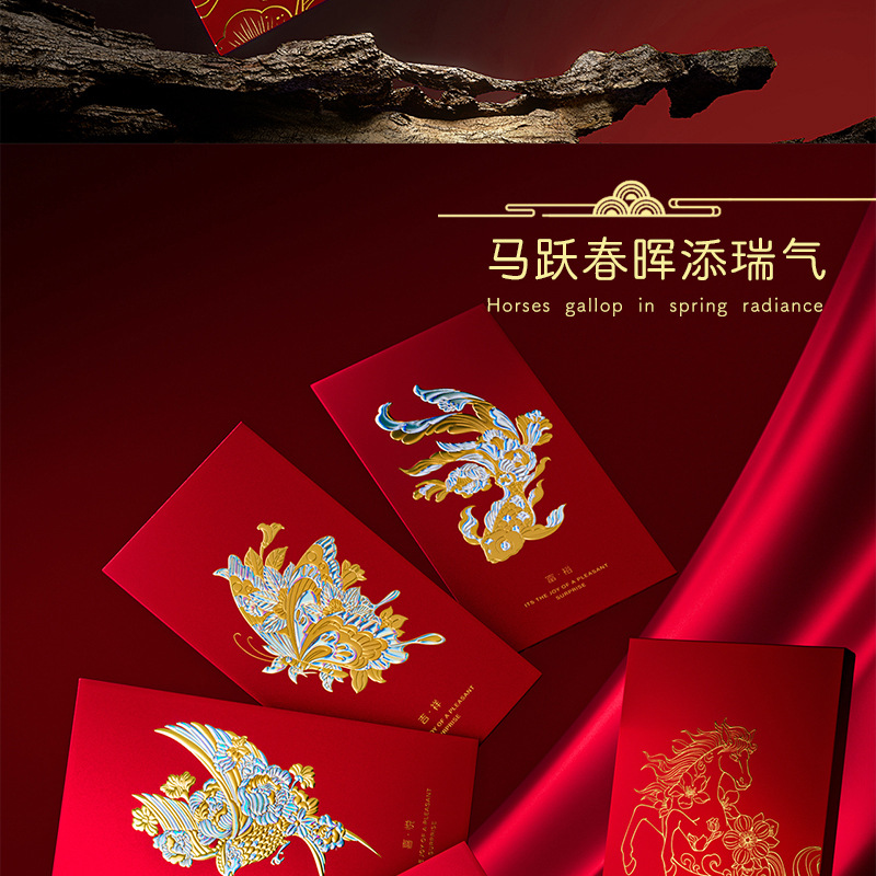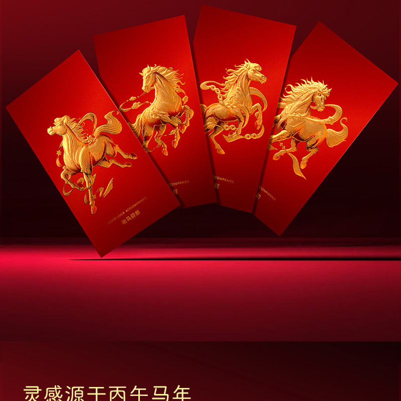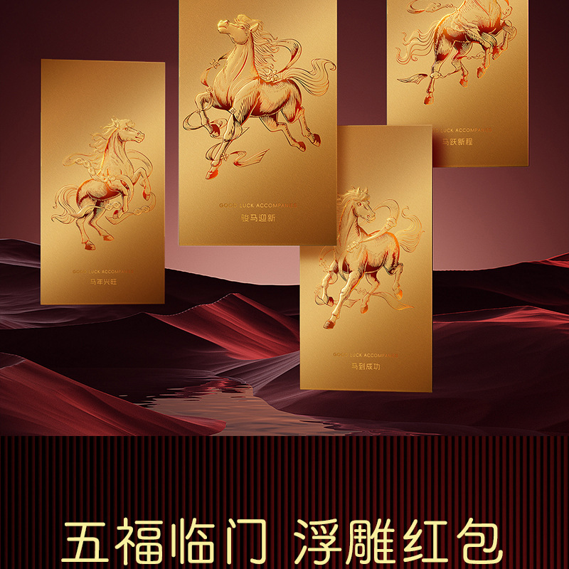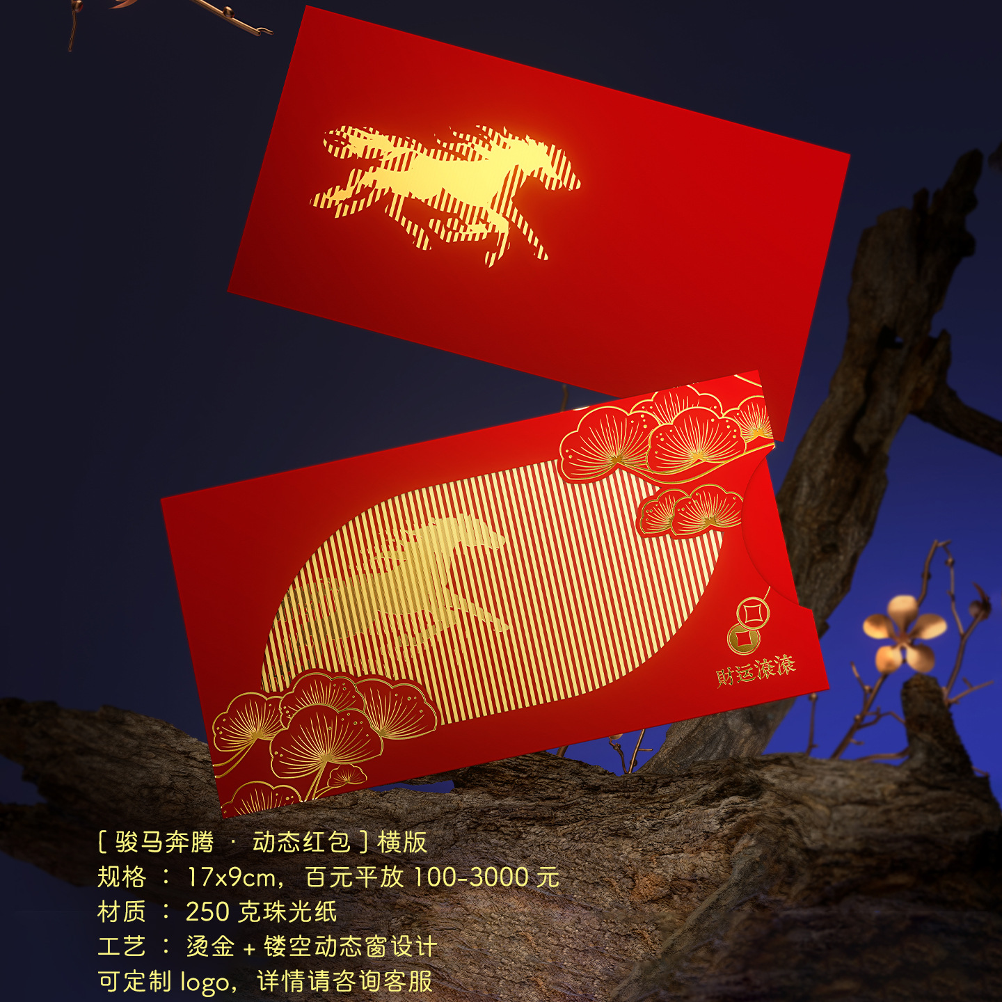 2026新年马跃春晖红包炫彩浮雕烫金利是封企业红包袋创意可印LOGO