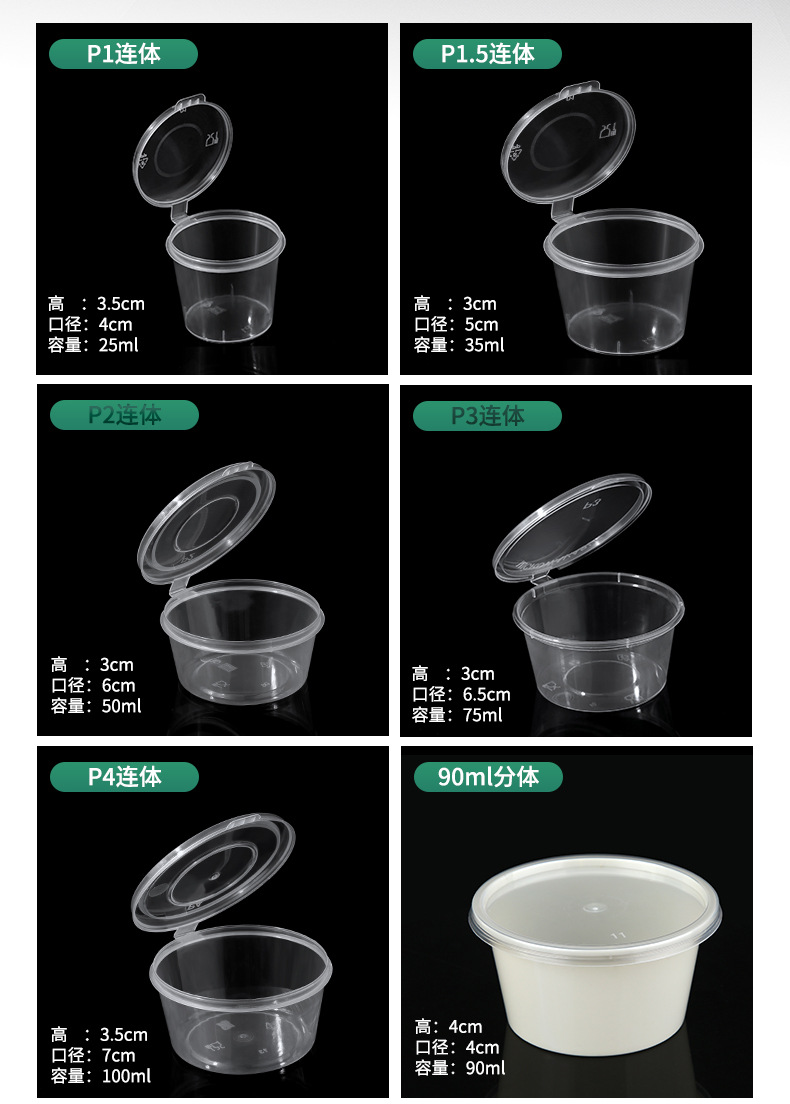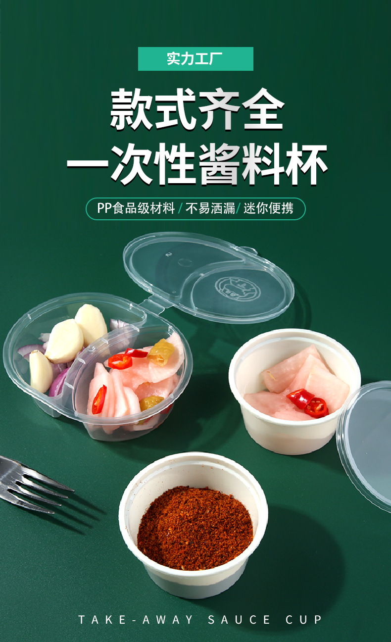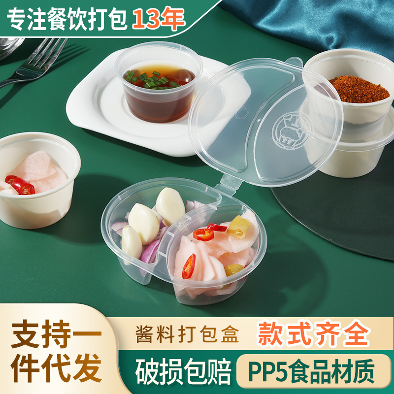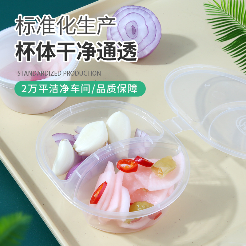 一次性酱料盒连体带盖蘸料杯外卖调料盒密封加厚外扣圆形小料盒子