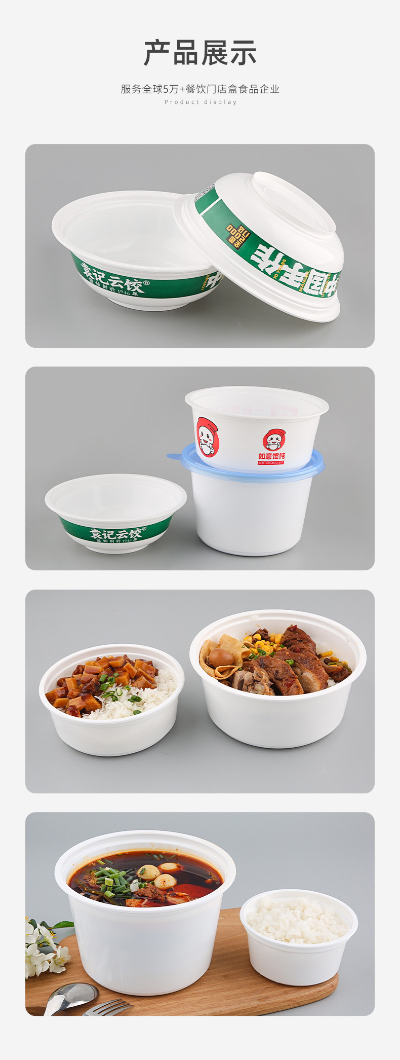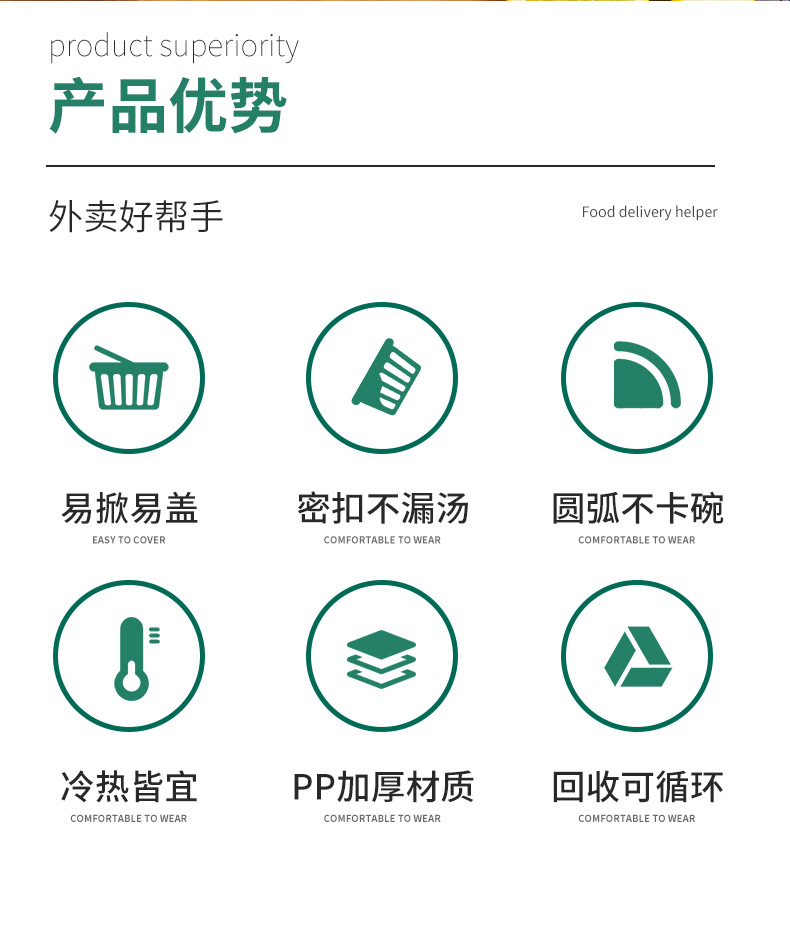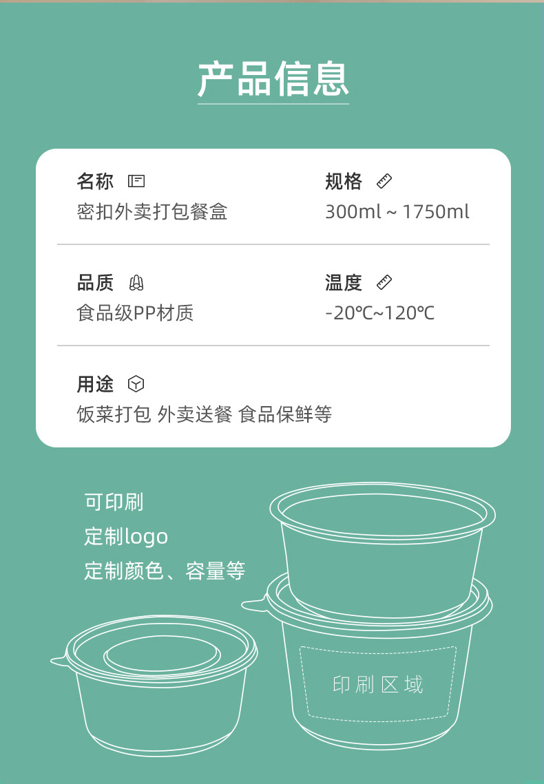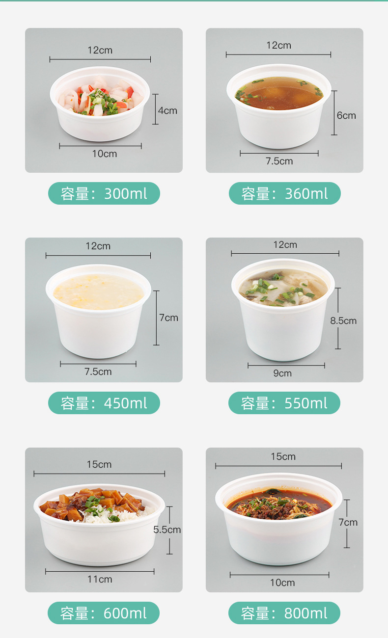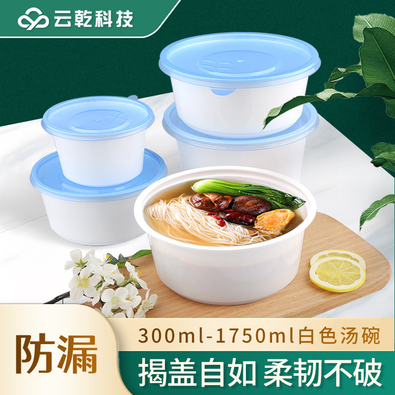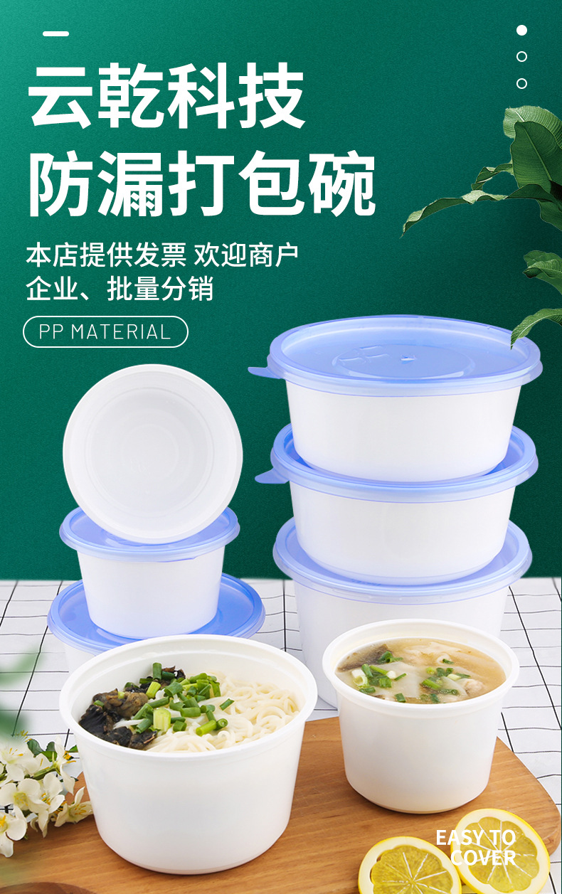 一次性碗食品级外卖盒防漏带盖圆形饭盒密封餐盒耐高温野餐打包碗
