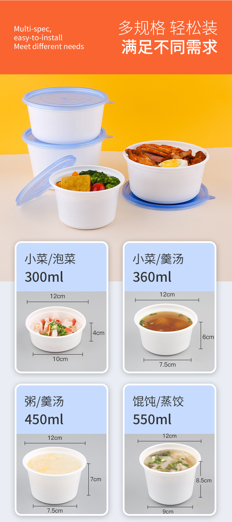一次性饭盒圆形餐盒汤面分离打包盒火锅外卖盒子火锅外卖打包盒